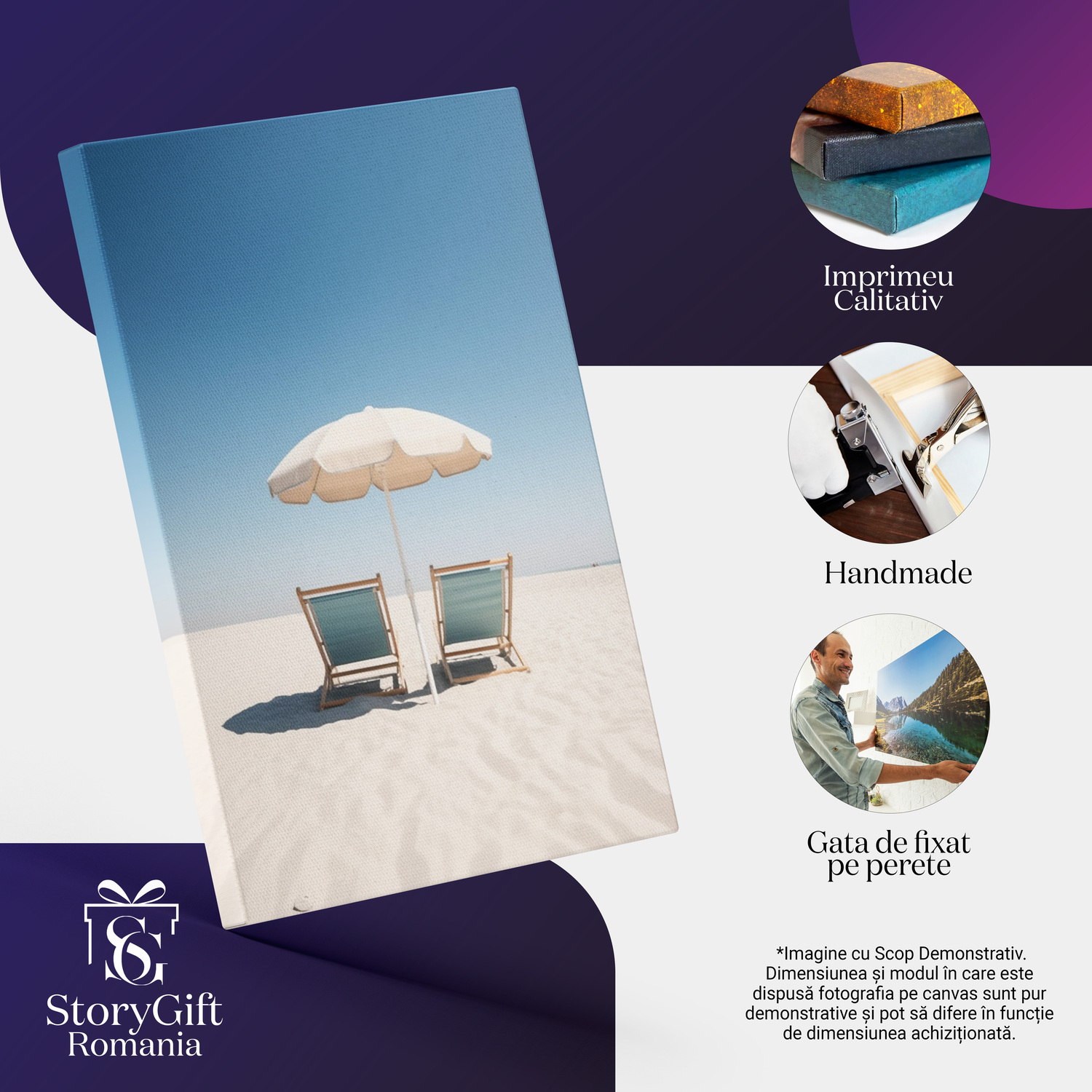 Notă importantă: Precizăm că imaginile de pe site au scop ilustrativ. Detaliile reale ale produsului pot prezenta diferențe minore față de reprezentările digitale, datorită variațiilor de culoare, mărimea tabloului și rezoluția dispozitivelor. Disponibilitatea în diverse dimensiuni ne permite să satisfacem nevoile dvs. specifice; pentru a vă asigura de alegerea potrivită, recomandăm măsurarea atentă a spațiului alocat.