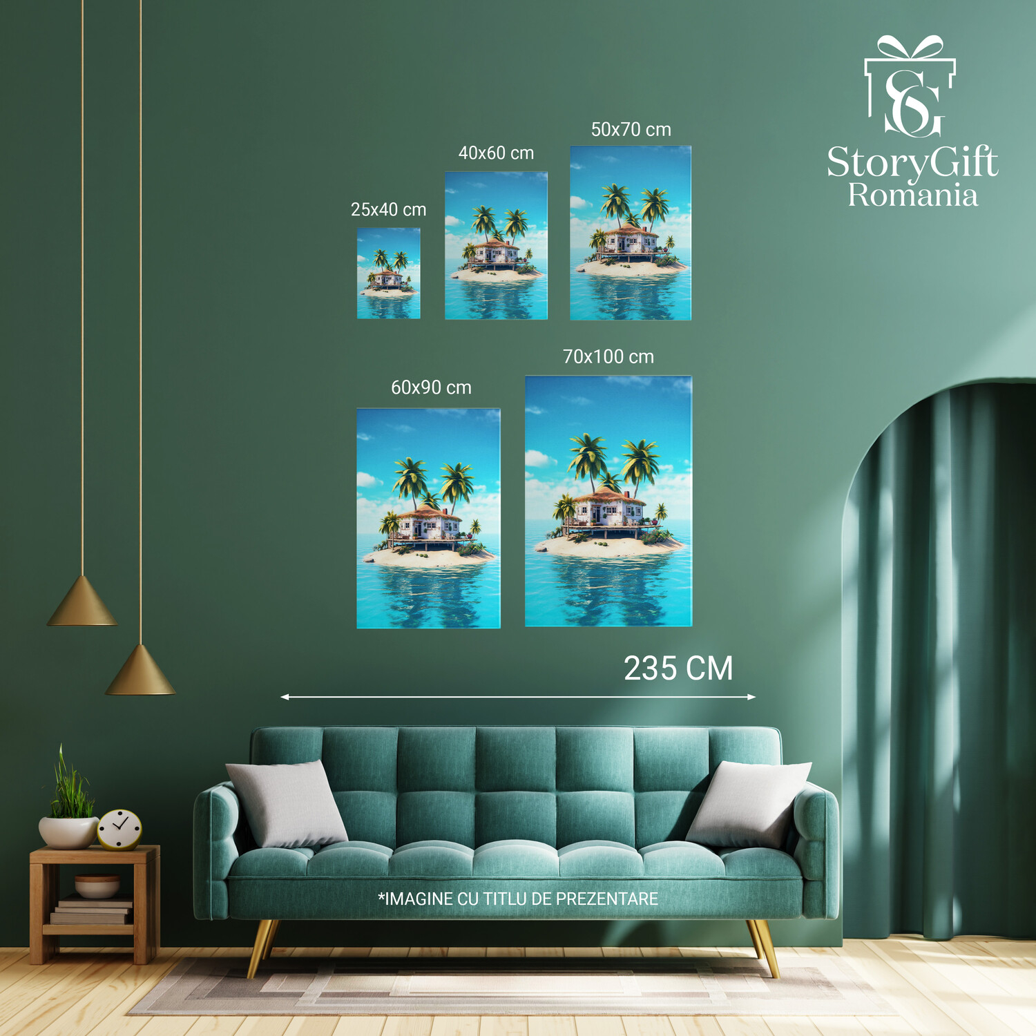 Notă importantă: Precizăm că imaginile de pe site au scop ilustrativ. Detaliile reale ale produsului pot prezenta diferențe minore față de reprezentările digitale, datorită variațiilor de culoare, mărimea tabloului și rezoluția dispozitivelor. Disponibilitatea în diverse dimensiuni ne permite să satisfacem nevoile dvs. specifice; pentru a vă asigura de alegerea potrivită, recomandăm măsurarea atentă a spațiului alocat.