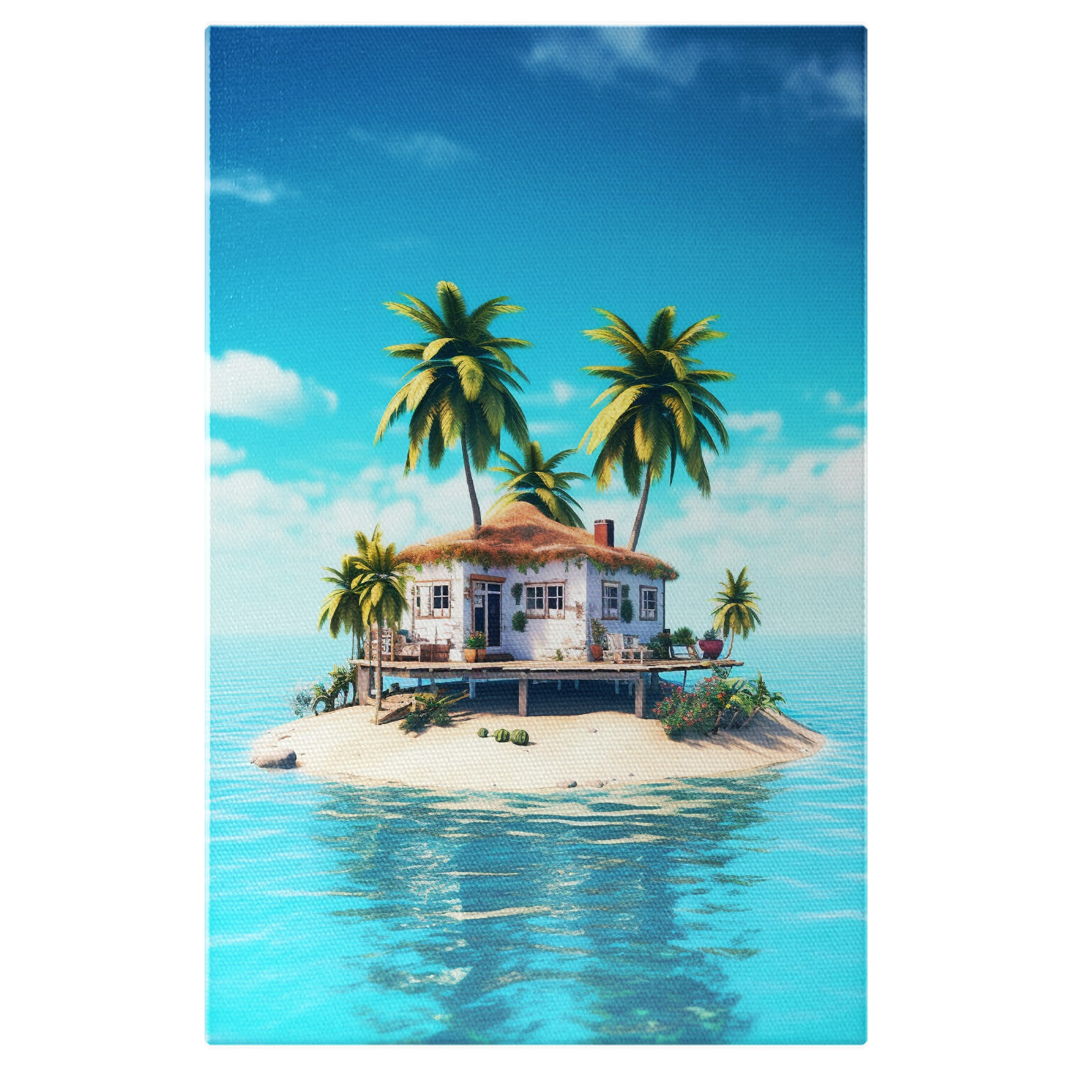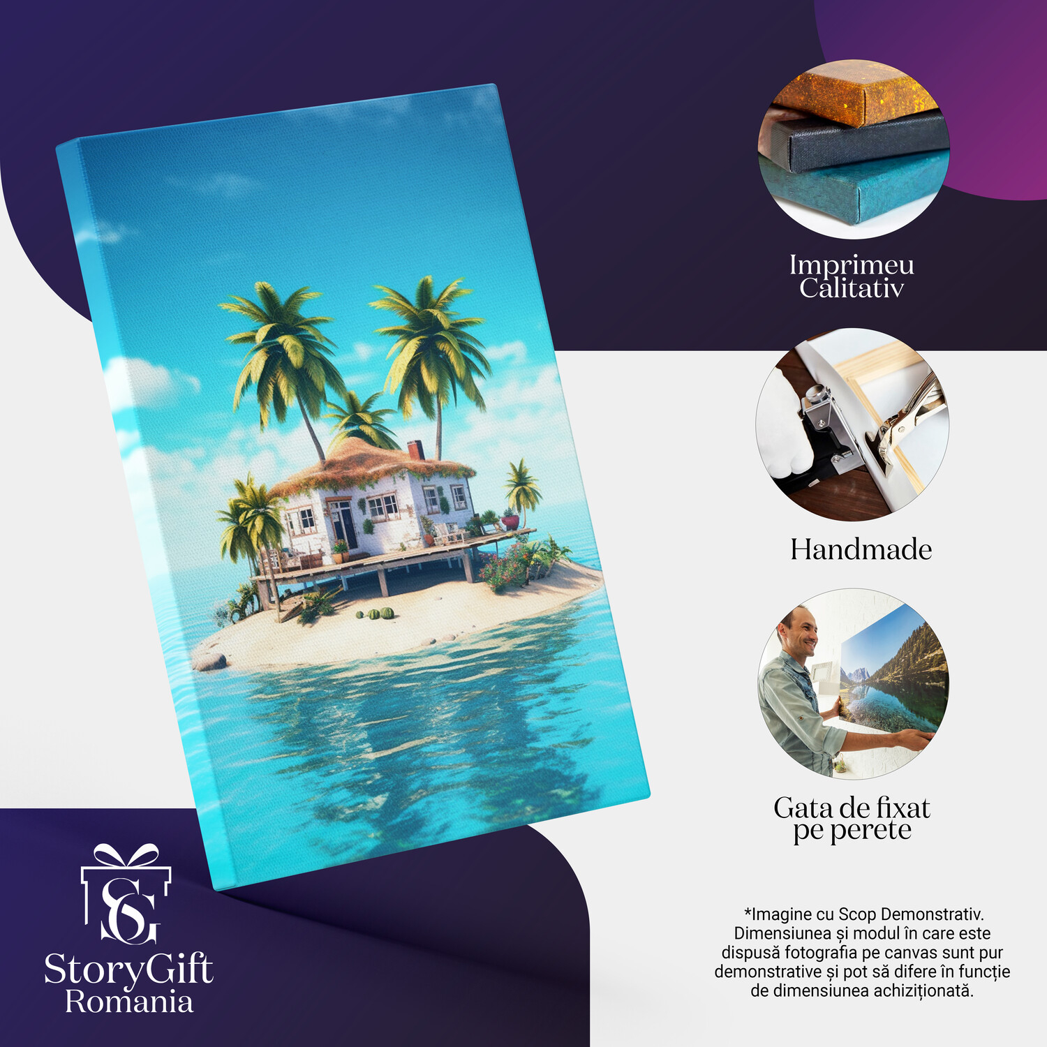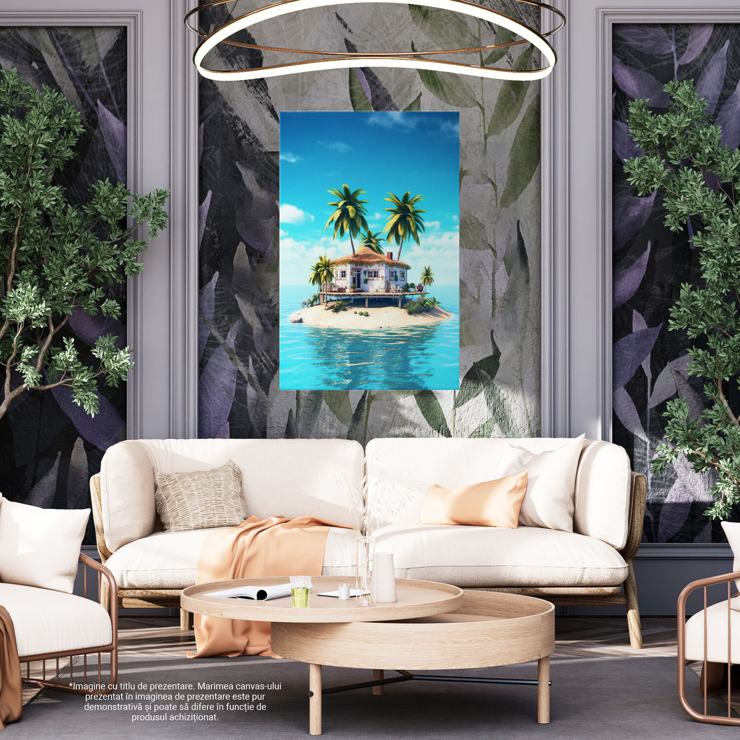 Tablou Canvas: O casuta pe o insula micuta - mare apa in mijlocul pustietatii Pictura Digitala - Tablou Canvas Signature de la StoryGift Romania
