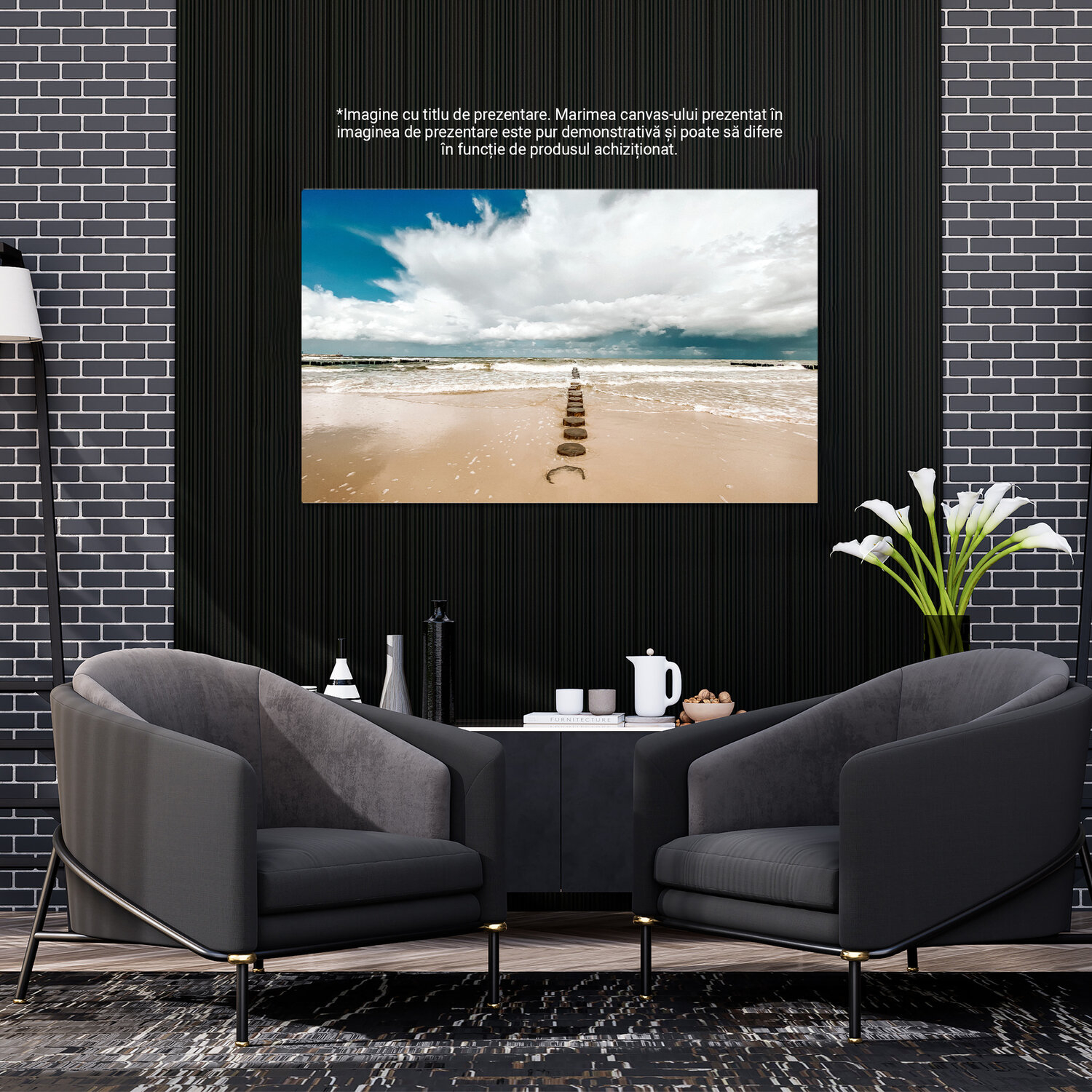 Tablou Canvas: Plaja Goala cu Nisip si Piatre intr-un Peisaj Marin - Tablou Canvas Signature de la StoryGift Romania