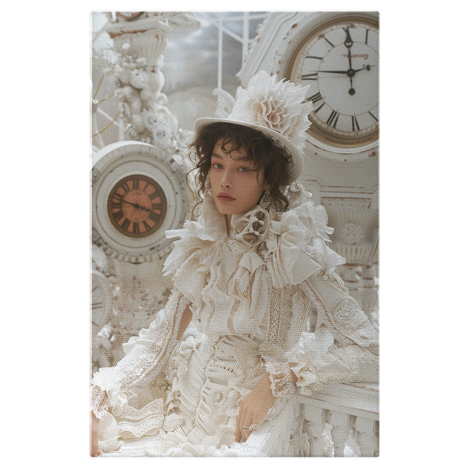 Tablou Canvas: Albul in Moda Feminitatea Imbracata in Fronseuri si Dantele de Lux Ora Fixa Pictura Digitala 40x25CM
