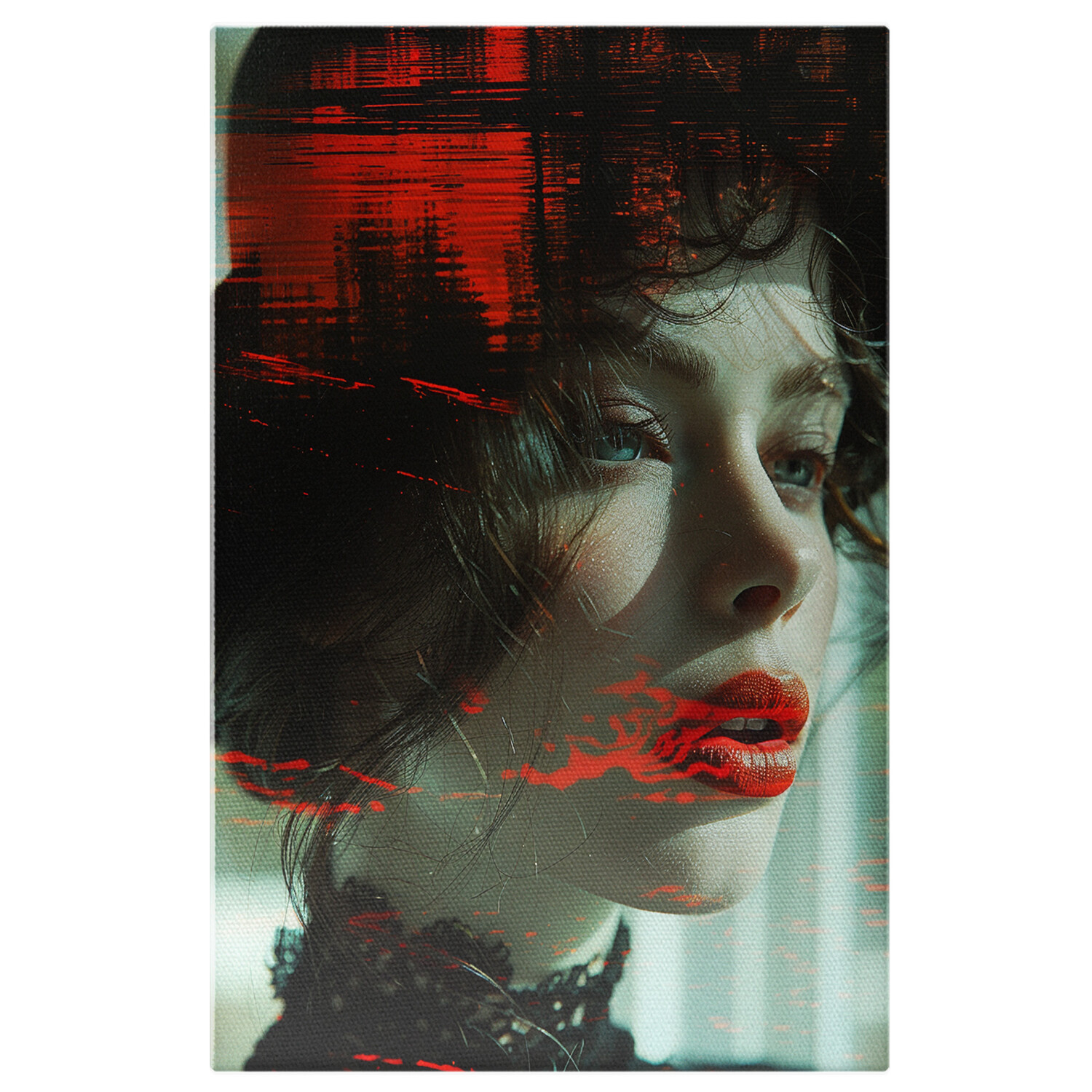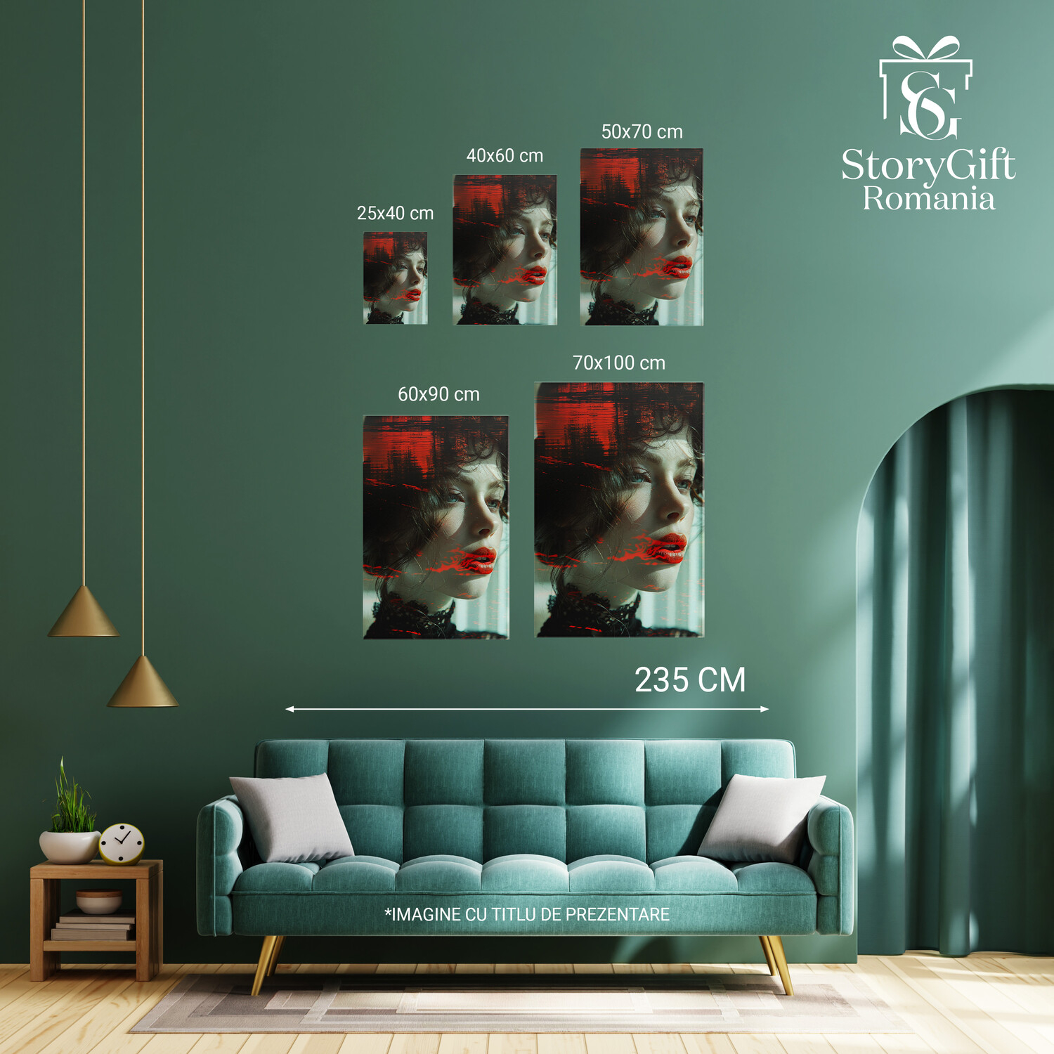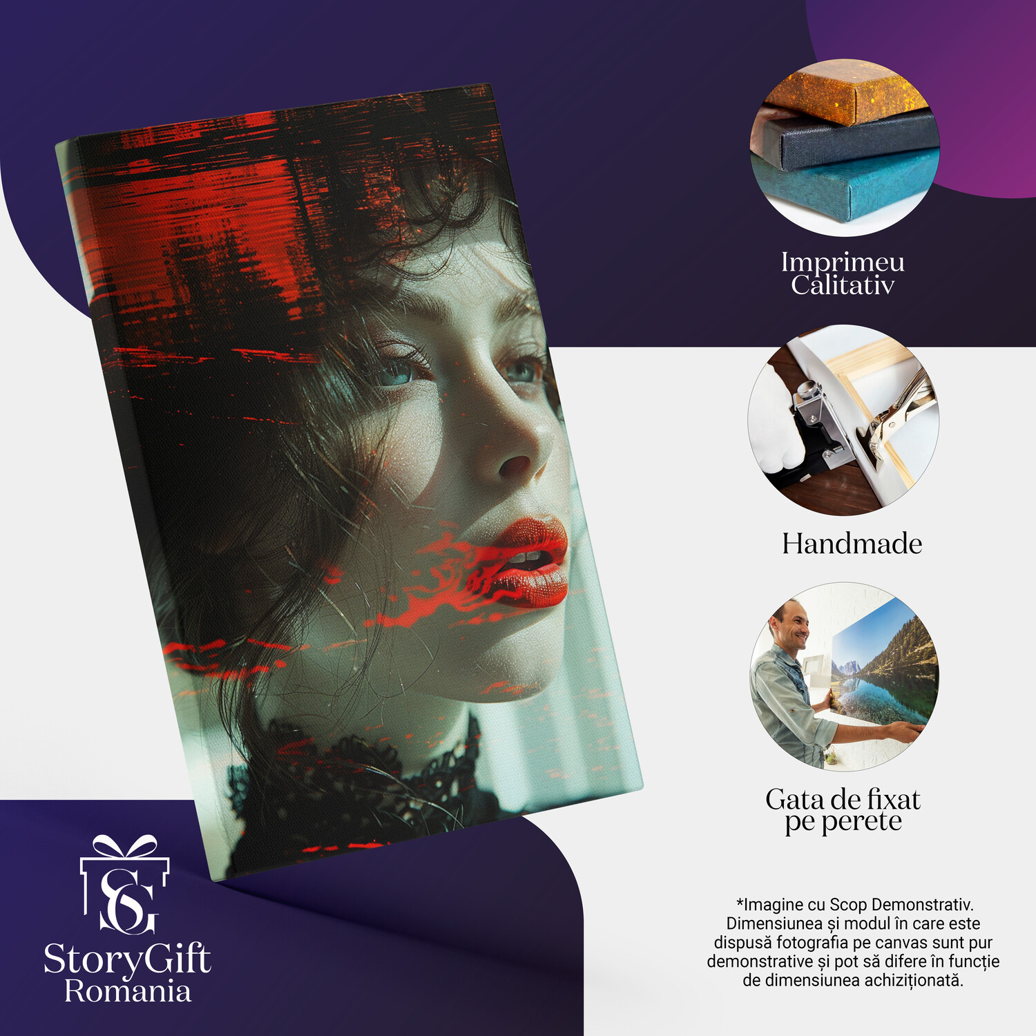 Tablou Canvas Amintirea Locului de Bastina a Brunetei cu Buze de Foc Dorinta si Melancolie , Pictura Digitala - Tablou Canvas Signature de la StoryGift Romania