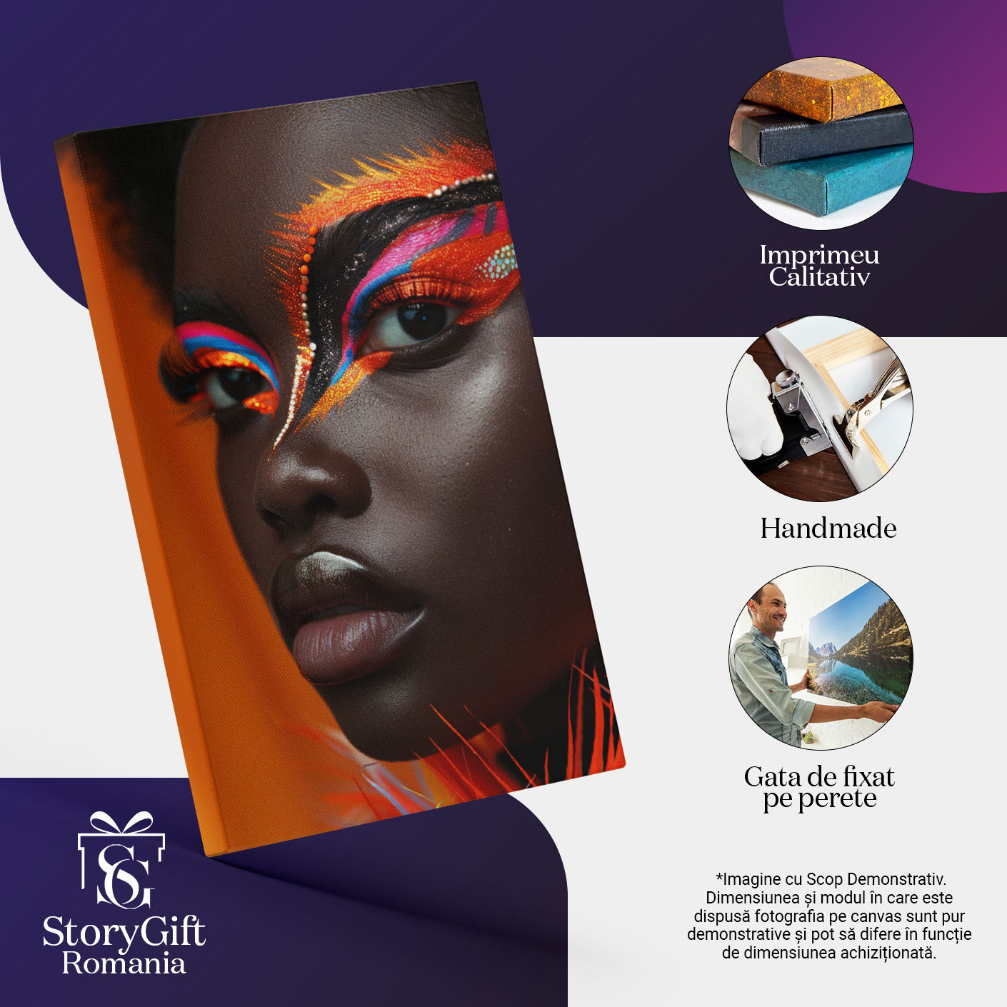 Tablou Canvas Black Female Face Pictata la Ochi cu Genele Lungi si Buzele Mari cu Ochii Negri Luminati , Pictura Digitala 40x25CM