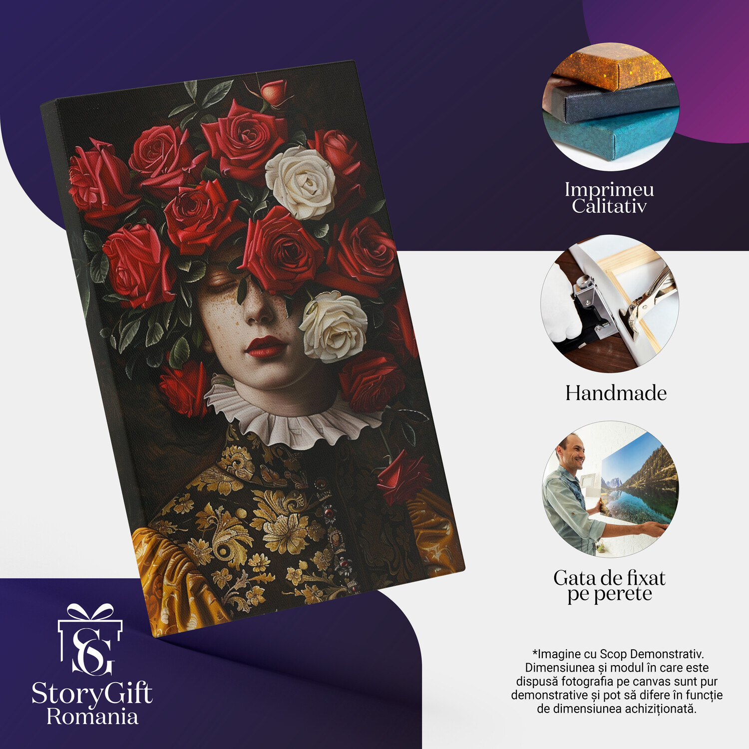 Notă importantă: Precizăm că imaginile de pe site au scop ilustrativ. Detaliile reale ale produsului pot prezenta diferențe minore față de reprezentările digitale, datorită variațiilor de culoare, mărimea tabloului și rezoluția dispozitivelor. Disponibilitatea în diverse dimensiuni ne permite să satisfacem nevoile dvs. specifice; pentru a vă asigura de alegerea potrivită, recomandăm măsurarea atentă a spațiului alocat.