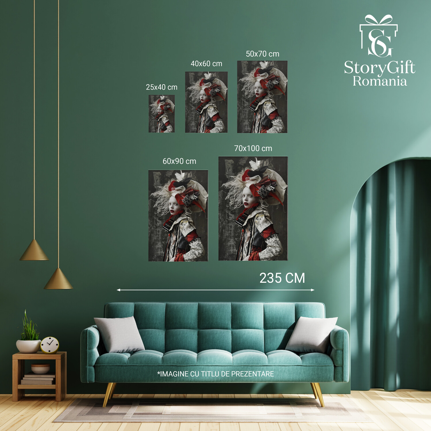 Notă importantă: Precizăm că imaginile de pe site au scop ilustrativ. Detaliile reale ale produsului pot prezenta diferențe minore față de reprezentările digitale, datorită variațiilor de culoare, mărimea tabloului și rezoluția dispozitivelor. Disponibilitatea în diverse dimensiuni ne permite să satisfacem nevoile dvs. specifice; pentru a vă asigura de alegerea potrivită, recomandăm măsurarea atentă a spațiului alocat.