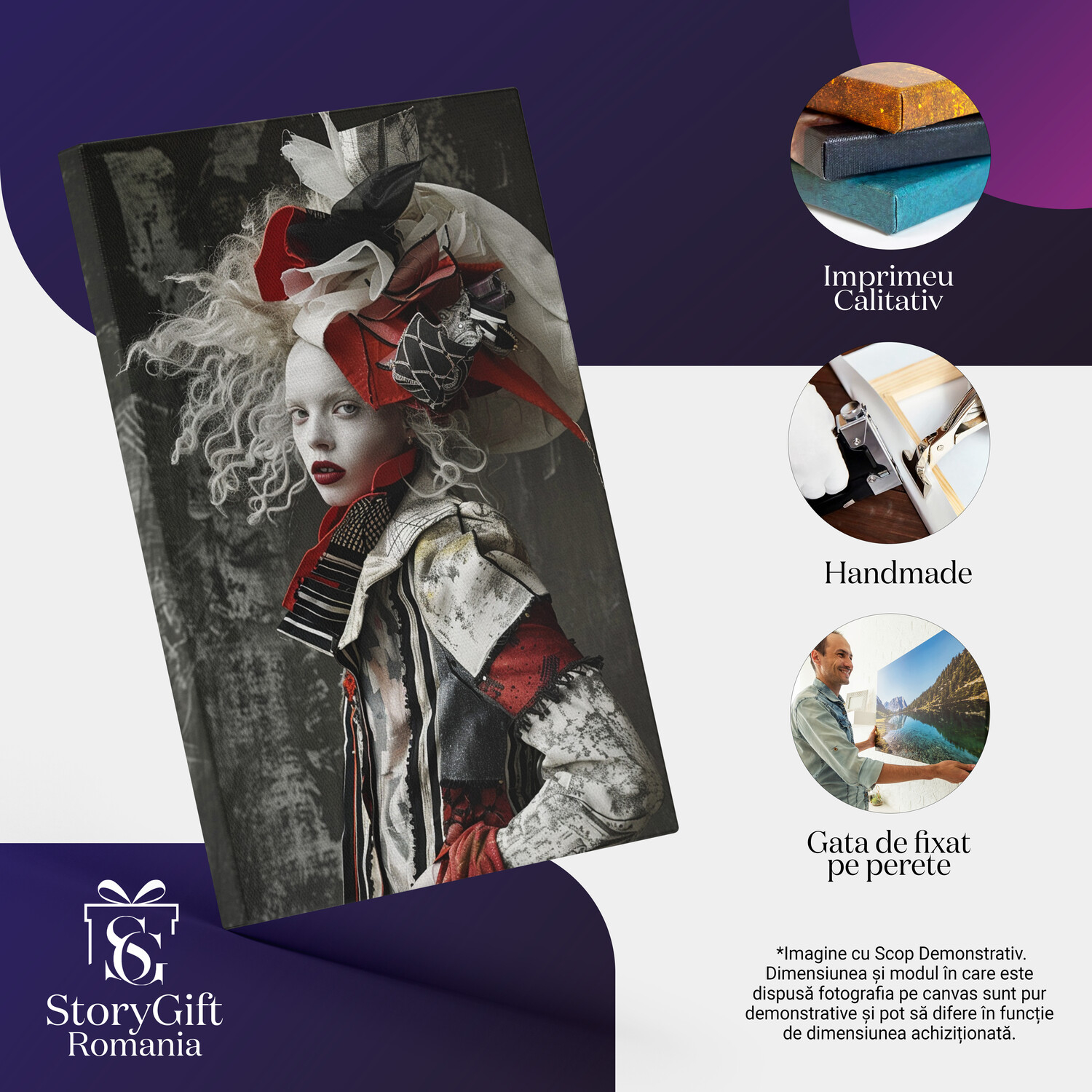 Tablou Canvas Costum tip Mad Hater alb si rosu cu detalii negre - Fundal de beton Invechit , Pictura Digitala - Tablou Canvas Signature de la StoryGift Romania
