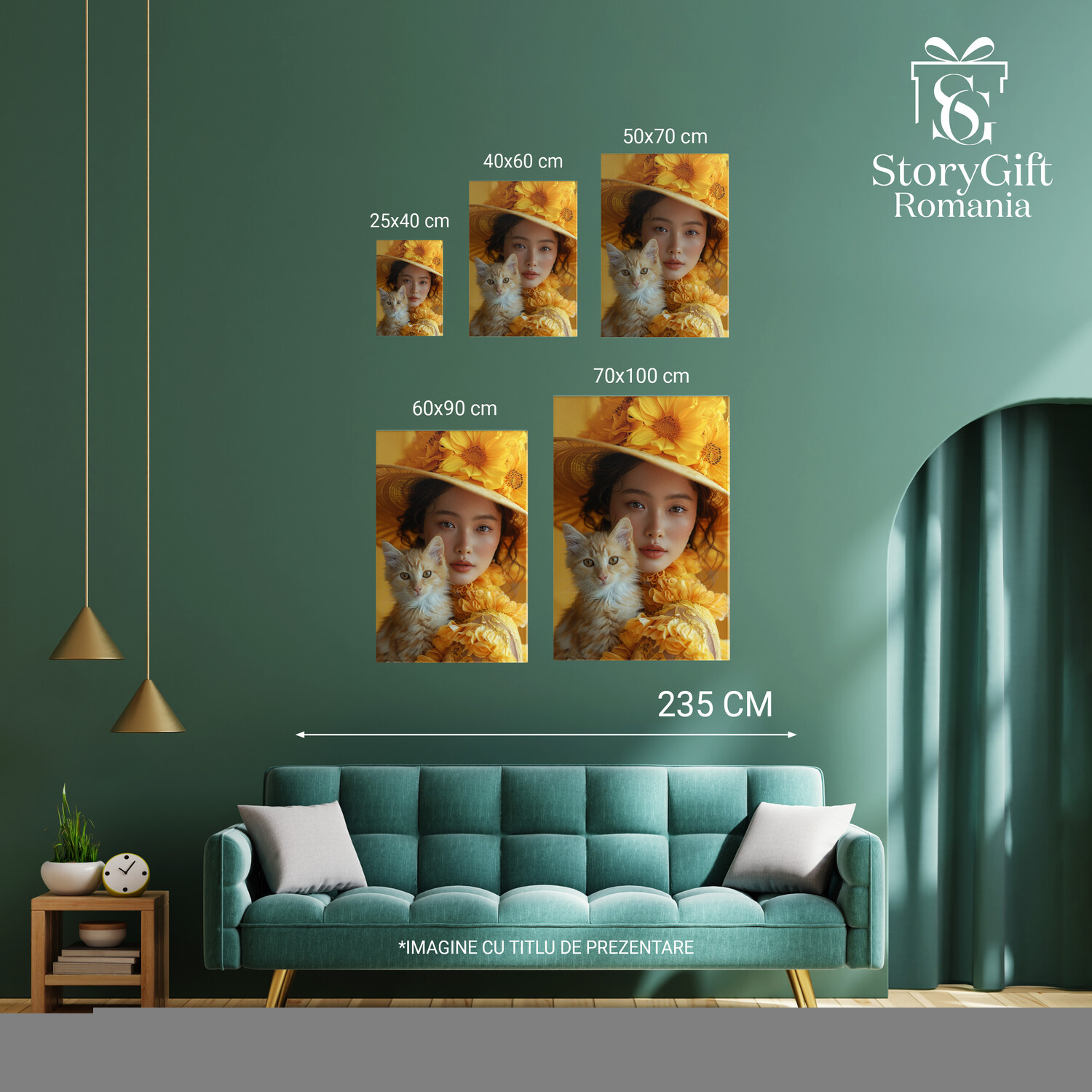 Notă importantă: Precizăm că imaginile de pe site au scop ilustrativ. Detaliile reale ale produsului pot prezenta diferențe minore față de reprezentările digitale, datorită variațiilor de culoare, mărimea tabloului și rezoluția dispozitivelor. Disponibilitatea în diverse dimensiuni ne permite să satisfacem nevoile dvs. specifice; pentru a vă asigura de alegerea potrivită, recomandăm măsurarea atentă a spațiului alocat.