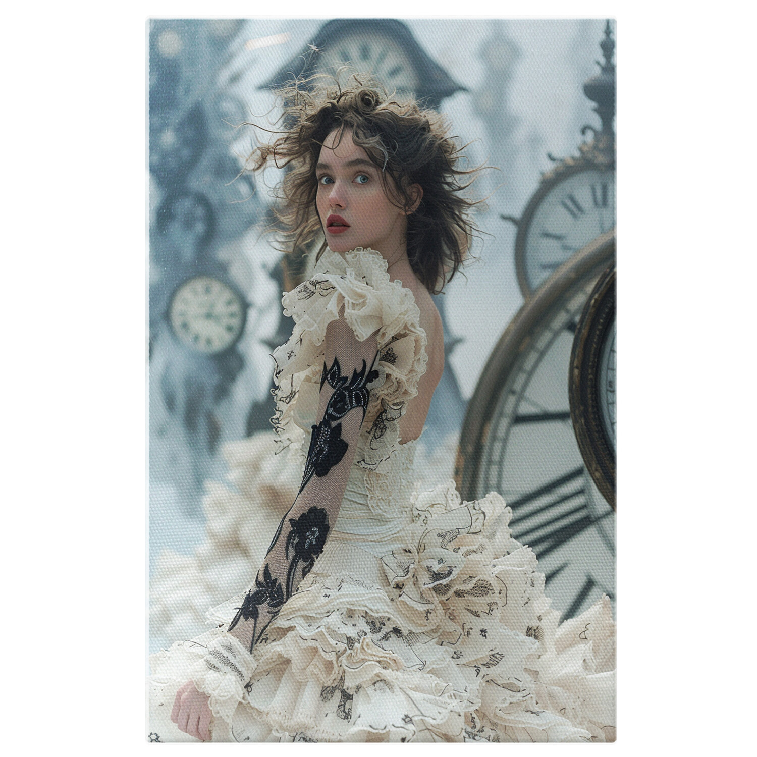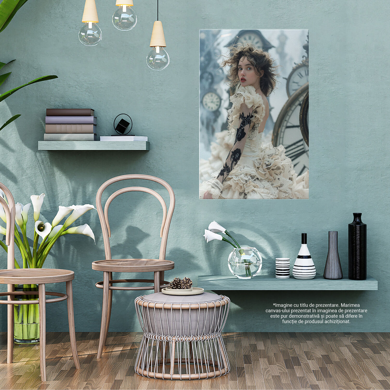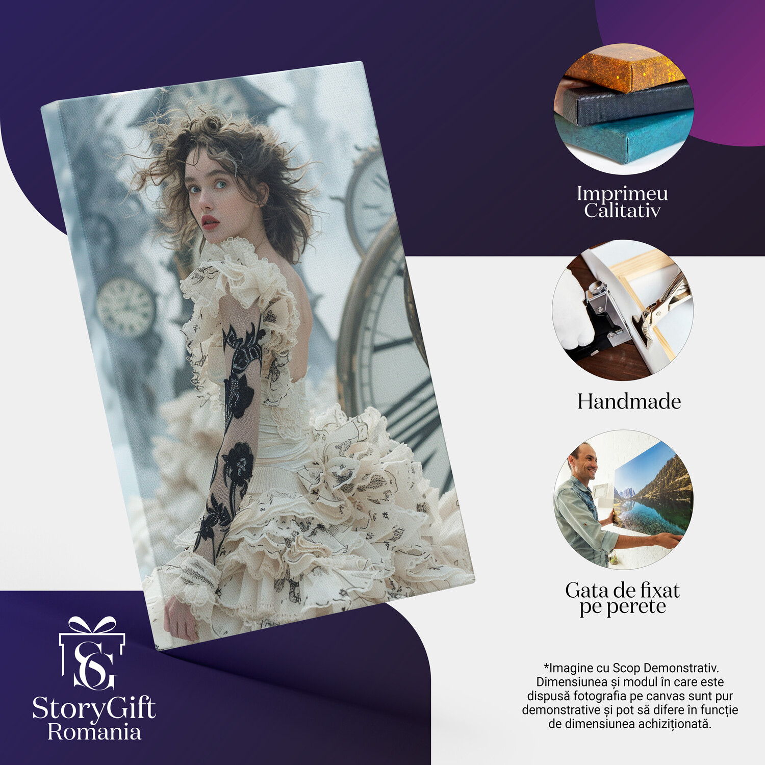 Tablou Canvas: Femeie ce paseste cu eleganta in ciuda timpului neprietenos- Stilul vremurilor apuse Pictura Digitala - Tablou Canvas Signature de la StoryGift Romania