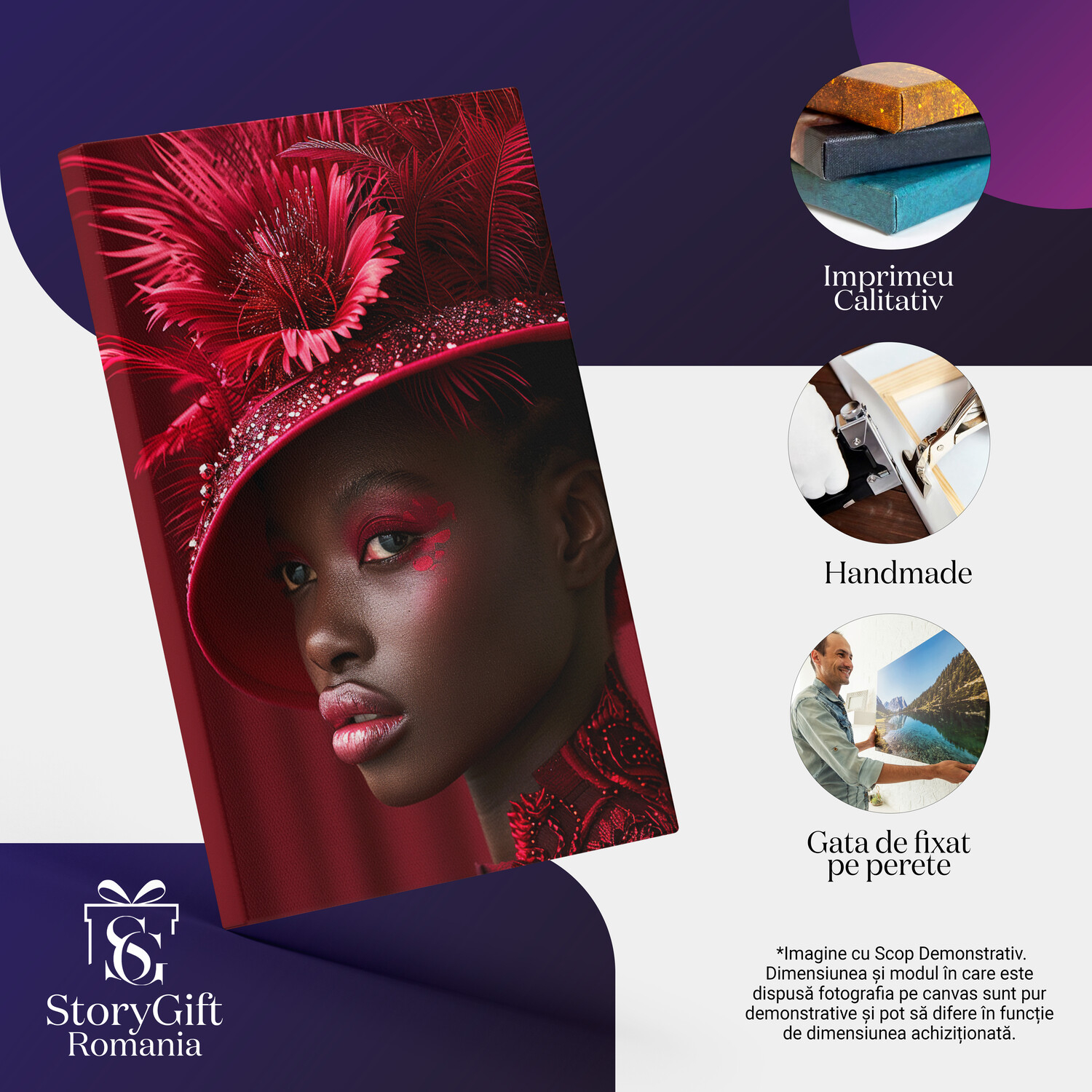 Notă importantă: Precizăm că imaginile de pe site au scop ilustrativ. Detaliile reale ale produsului pot prezenta diferențe minore față de reprezentările digitale, datorită variațiilor de culoare, mărimea tabloului și rezoluția dispozitivelor. Disponibilitatea în diverse dimensiuni ne permite să satisfacem nevoile dvs. specifice; pentru a vă asigura de alegerea potrivită, recomandăm măsurarea atentă a spațiului alocat.