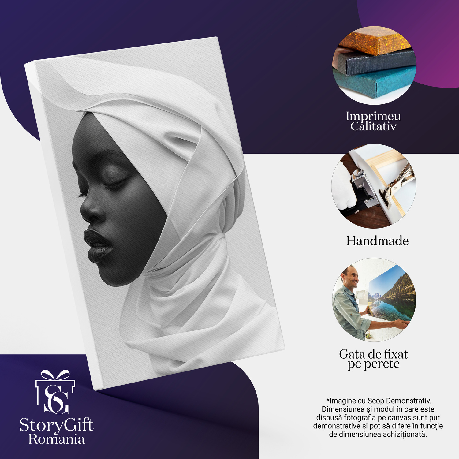 Notă importantă: Precizăm că imaginile de pe site au scop ilustrativ. Detaliile reale ale produsului pot prezenta diferențe minore față de reprezentările digitale, datorită variațiilor de culoare, mărimea tabloului și rezoluția dispozitivelor. Disponibilitatea în diverse dimensiuni ne permite să satisfacem nevoile dvs. specifice; pentru a vă asigura de alegerea potrivită, recomandăm măsurarea atentă a spațiului alocat.