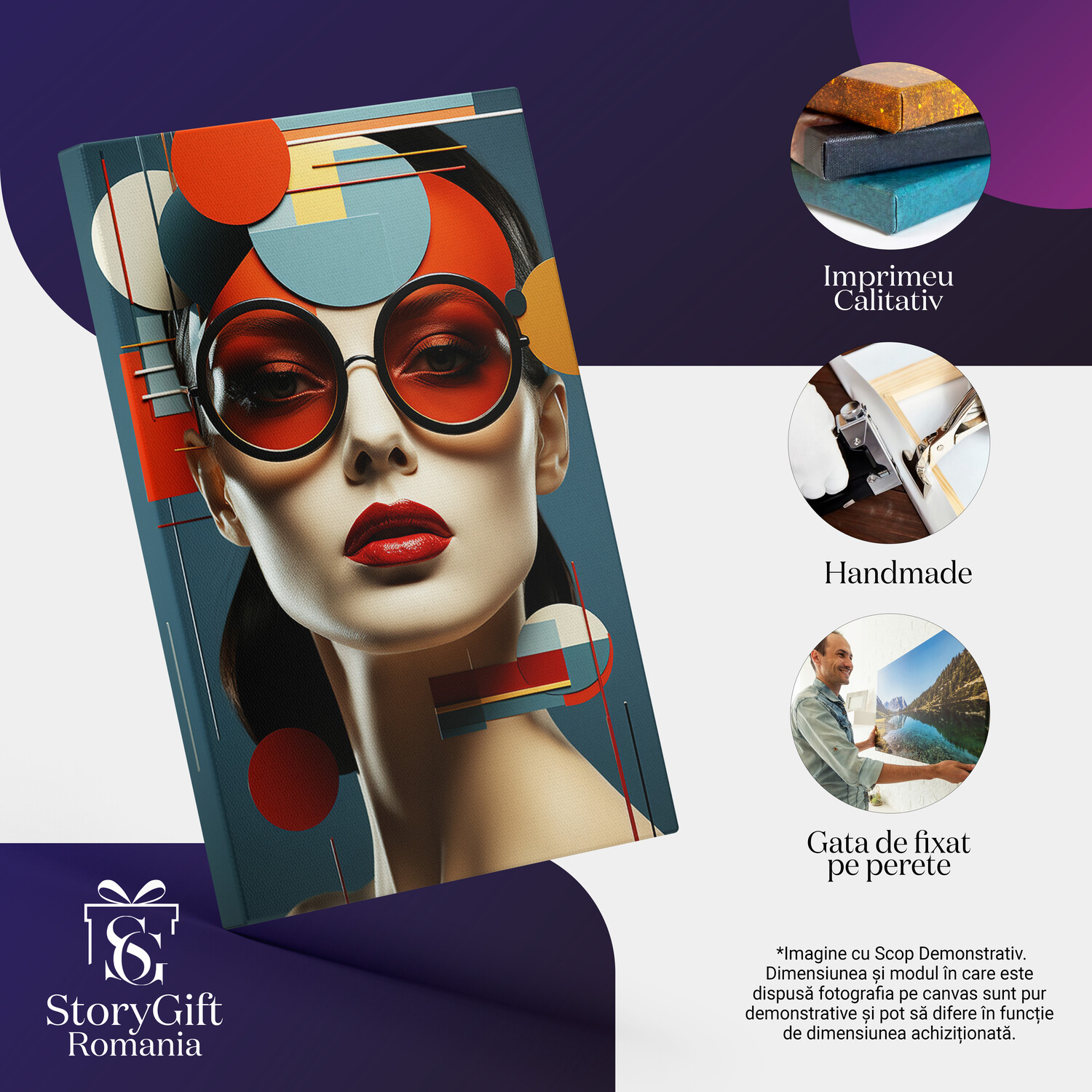 Tablou Canvas: Femeie palida cu buze rosii - ochelari forme geometrice Pictura Digitala - Tablou Canvas Signature de la StoryGift Romania