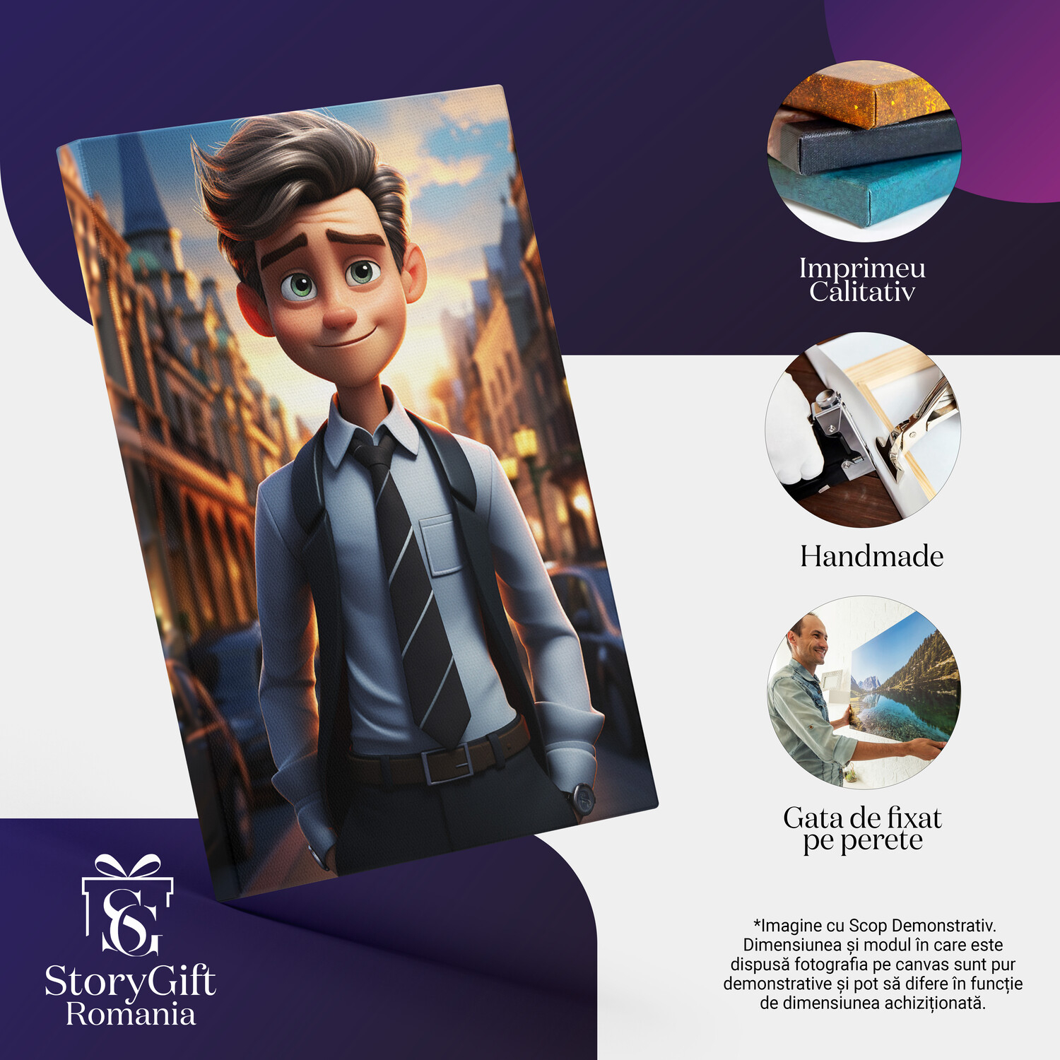Tablou Canvas: Figurina Animatie, baiat in sacou fara maneci Desen animat, Papusa, Accesoriu de moda, Design vestimentar Pictura Digitala - Tablou Canvas Signature de la StoryGift Romania