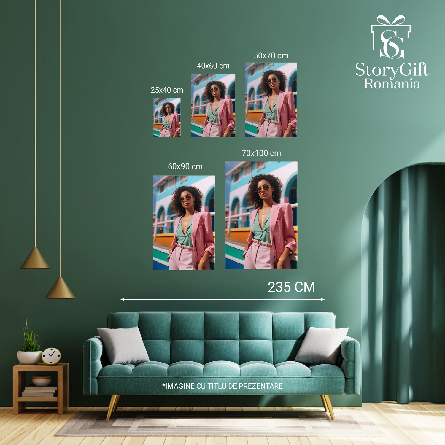 Notă importantă: Precizăm că imaginile de pe site au scop ilustrativ. Detaliile reale ale produsului pot prezenta diferențe minore față de reprezentările digitale, datorită variațiilor de culoare, mărimea tabloului și rezoluția dispozitivelor. Disponibilitatea în diverse dimensiuni ne permite să satisfacem nevoile dvs. specifice; pentru a vă asigura de alegerea potrivită, recomandăm măsurarea atentă a spațiului alocat.