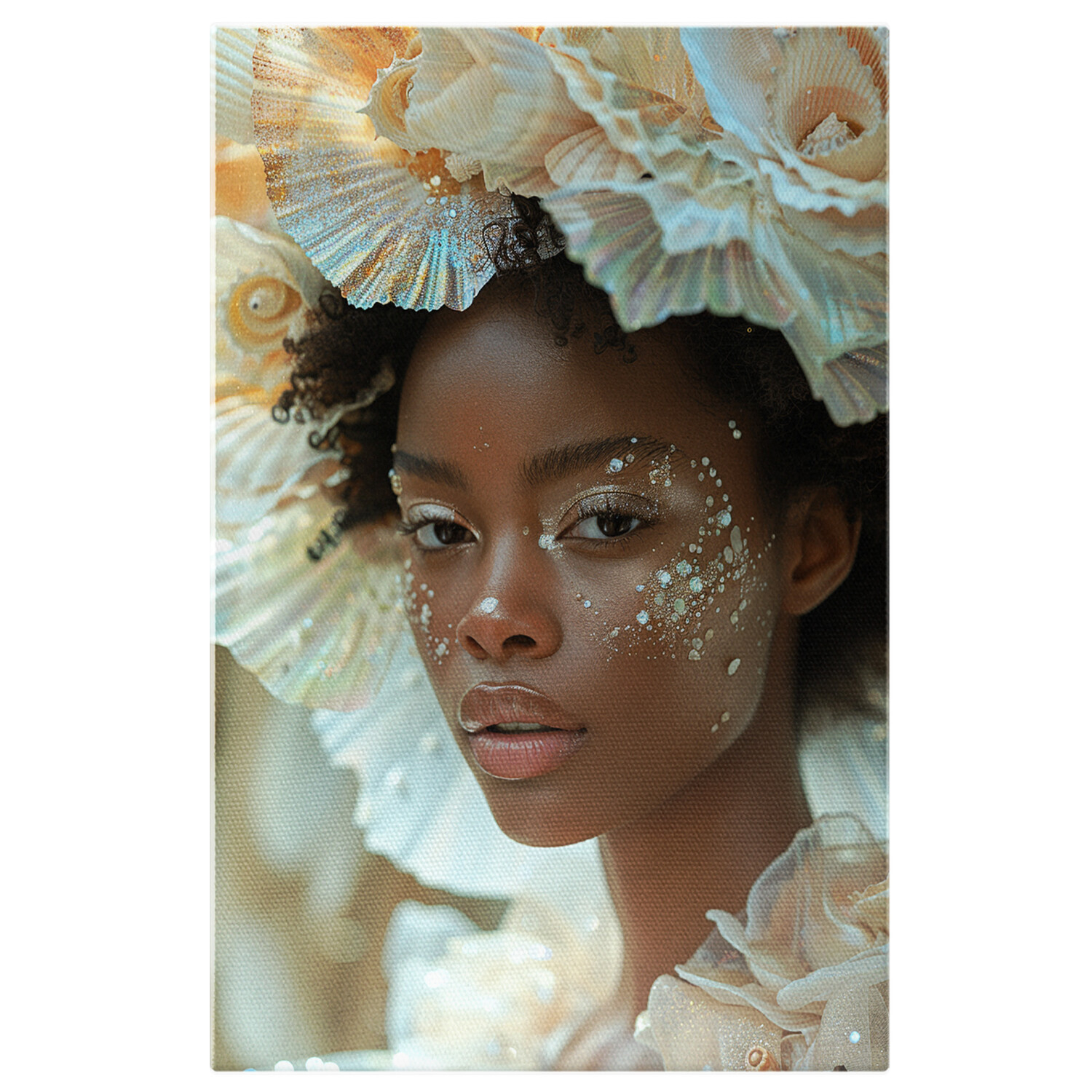 Tablou Canvas Frumusetea Fetei Ascunsa de Cupola Imensa de Flori pe Cap si Machiajul Stralucitor , Pictura Digitala - Tablou Canvas Signature de la StoryGift Romania