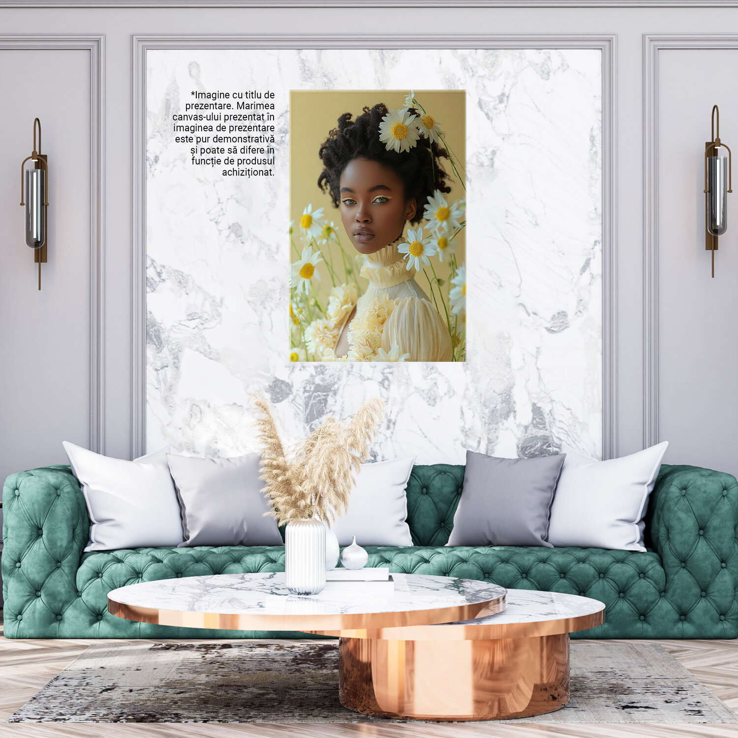 Tablou Canvas Inflorirea Gratiei Femeia de Culoare Inconjurata de Flori Delicate Albe , Pictura Digitala - Tablou Canvas Signature de la StoryGift Romania