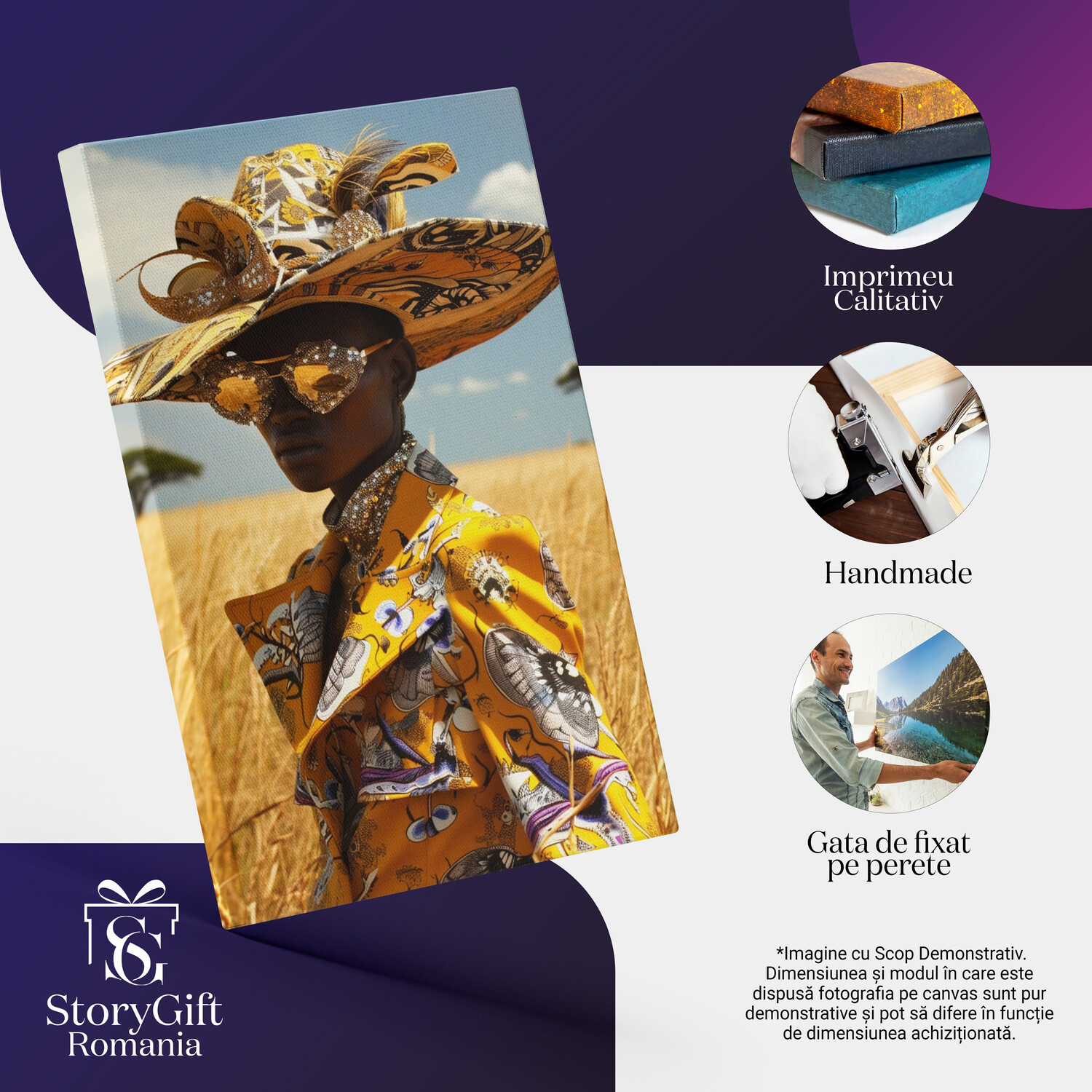Notă importantă: Precizăm că imaginile de pe site au scop ilustrativ. Detaliile reale ale produsului pot prezenta diferențe minore față de reprezentările digitale, datorită variațiilor de culoare, mărimea tabloului și rezoluția dispozitivelor. Disponibilitatea în diverse dimensiuni ne permite să satisfacem nevoile dvs. specifice; pentru a vă asigura de alegerea potrivită, recomandăm măsurarea atentă a spațiului alocat.
