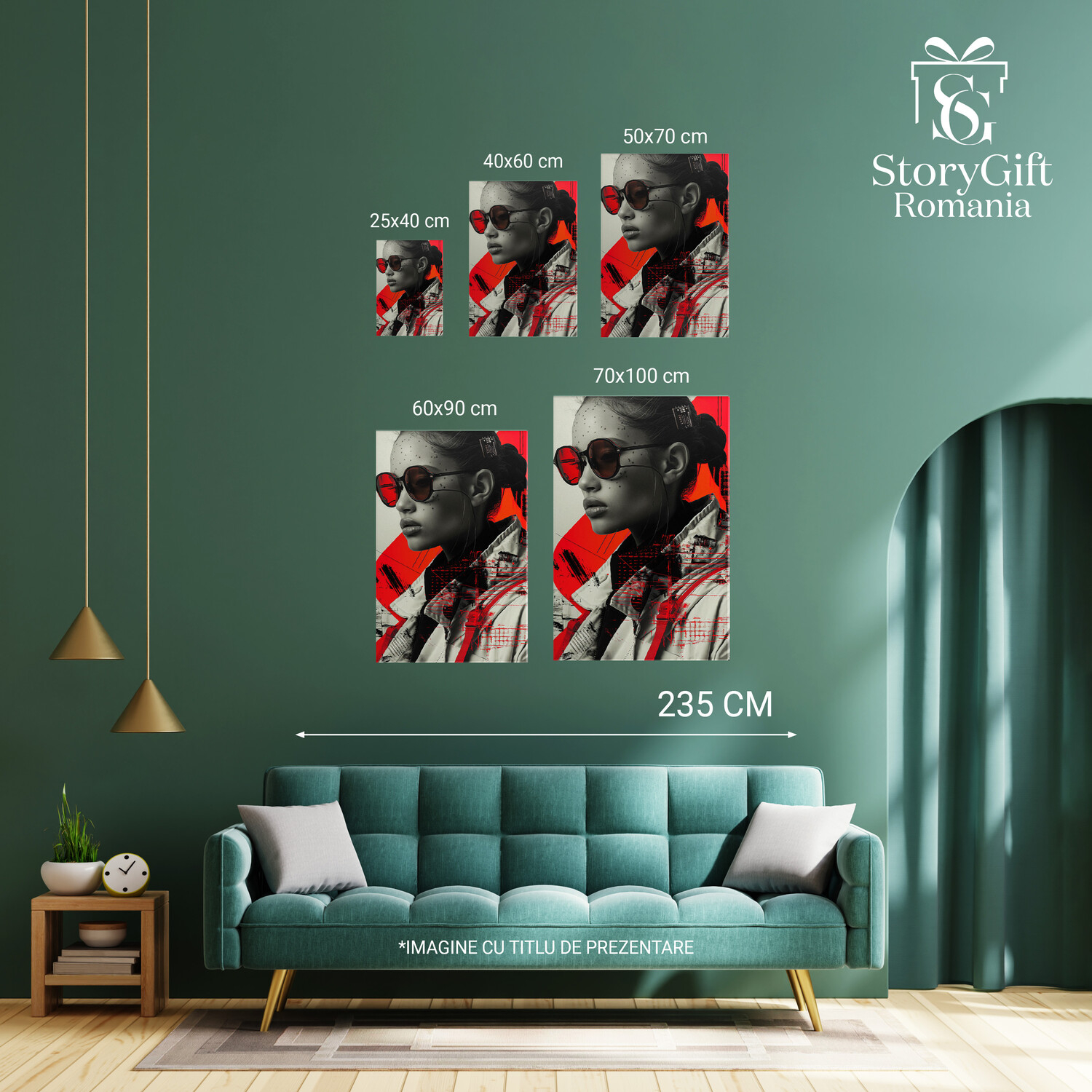 Notă importantă: Precizăm că imaginile de pe site au scop ilustrativ. Detaliile reale ale produsului pot prezenta diferențe minore față de reprezentările digitale, datorită variațiilor de culoare, mărimea tabloului și rezoluția dispozitivelor. Disponibilitatea în diverse dimensiuni ne permite să satisfacem nevoile dvs. specifice; pentru a vă asigura de alegerea potrivită, recomandăm măsurarea atentă a spațiului alocat.