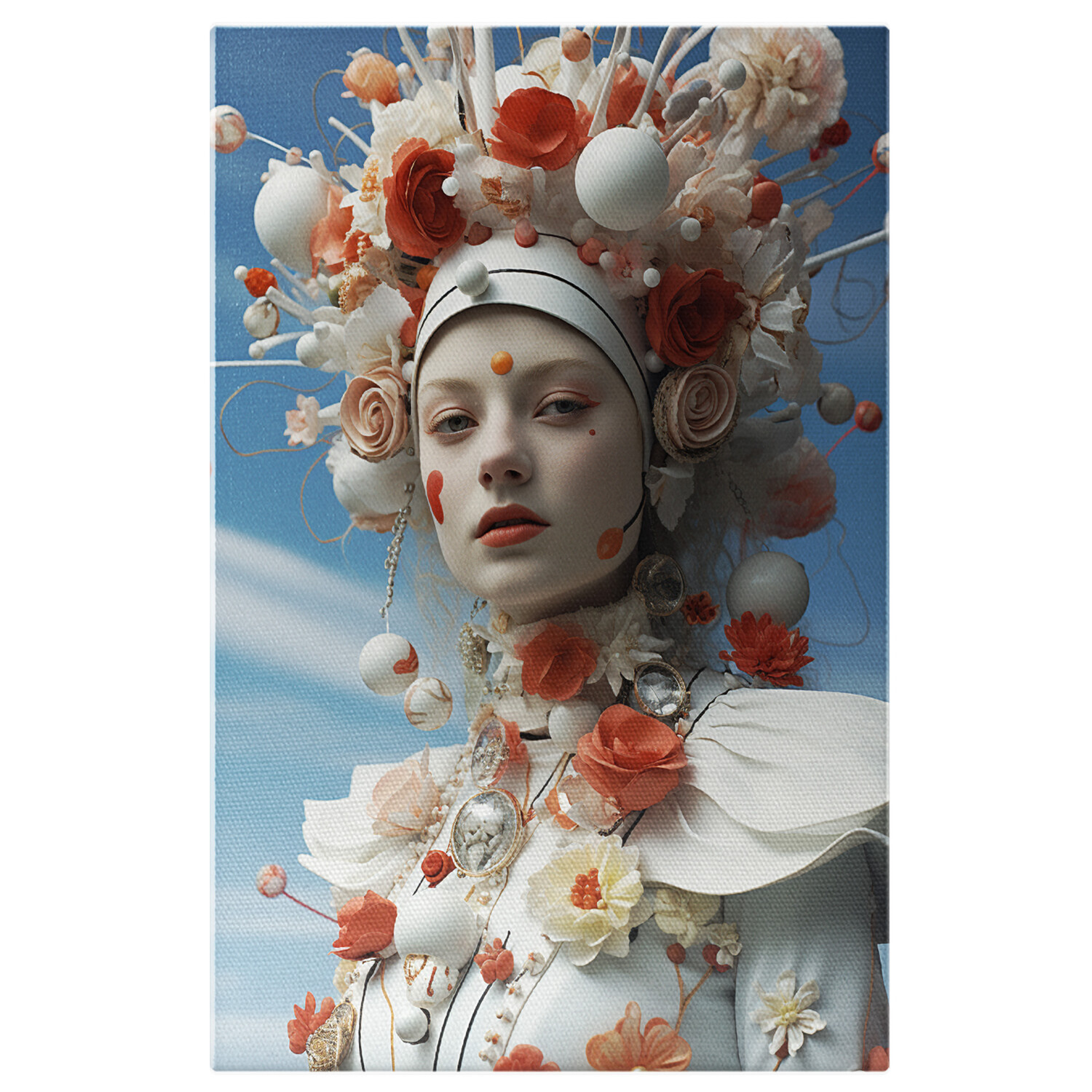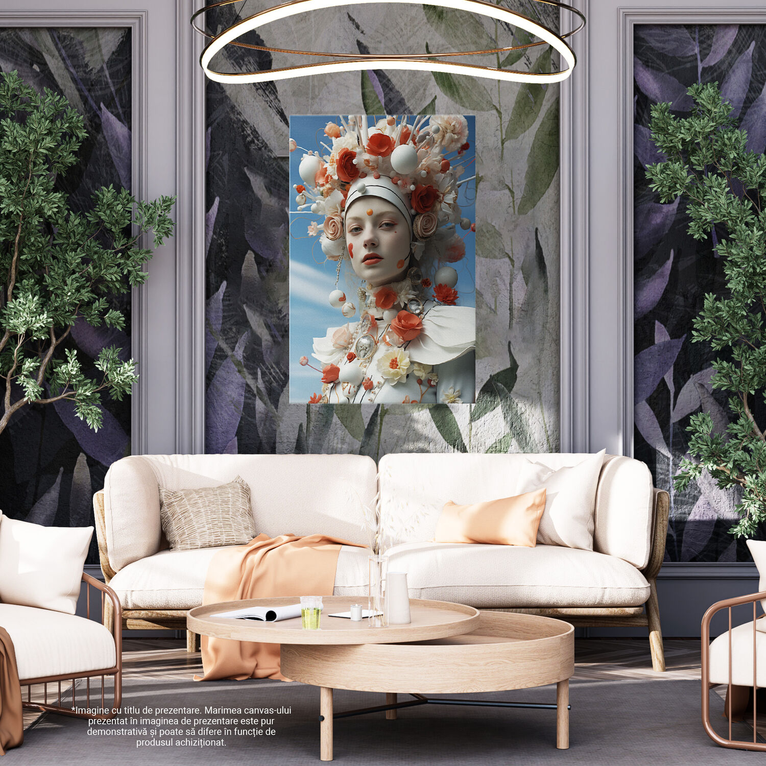 Tablou Canvas: O fata draguta cu multe flori pe cap si pe haine - eleganta Pictura Digitala - Tablou Canvas Signature de la StoryGift Romania