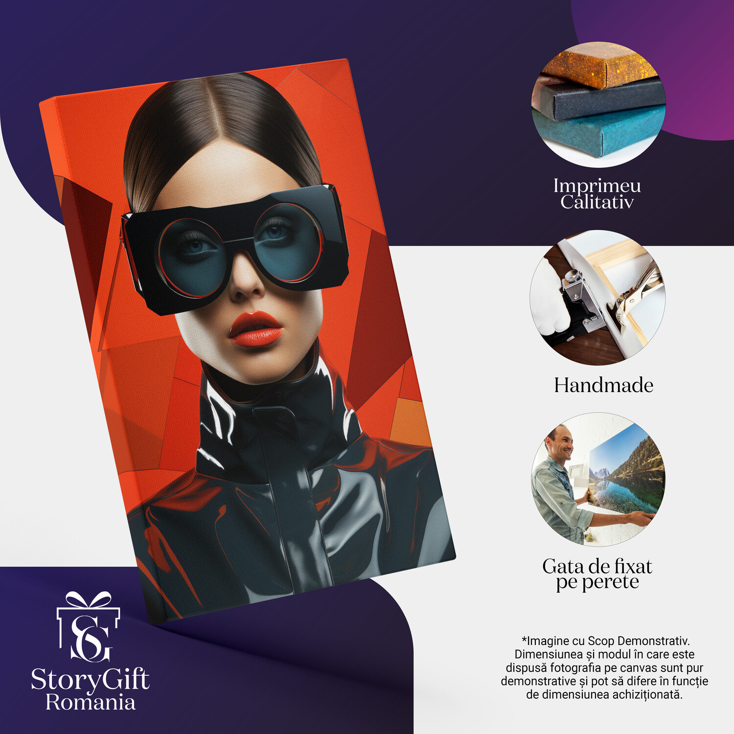 Notă importantă: Precizăm că imaginile de pe site au scop ilustrativ. Detaliile reale ale produsului pot prezenta diferențe minore față de reprezentările digitale, datorită variațiilor de culoare, mărimea tabloului și rezoluția dispozitivelor. Disponibilitatea în diverse dimensiuni ne permite să satisfacem nevoile dvs. specifice; pentru a vă asigura de alegerea potrivită, recomandăm măsurarea atentă a spațiului alocat.