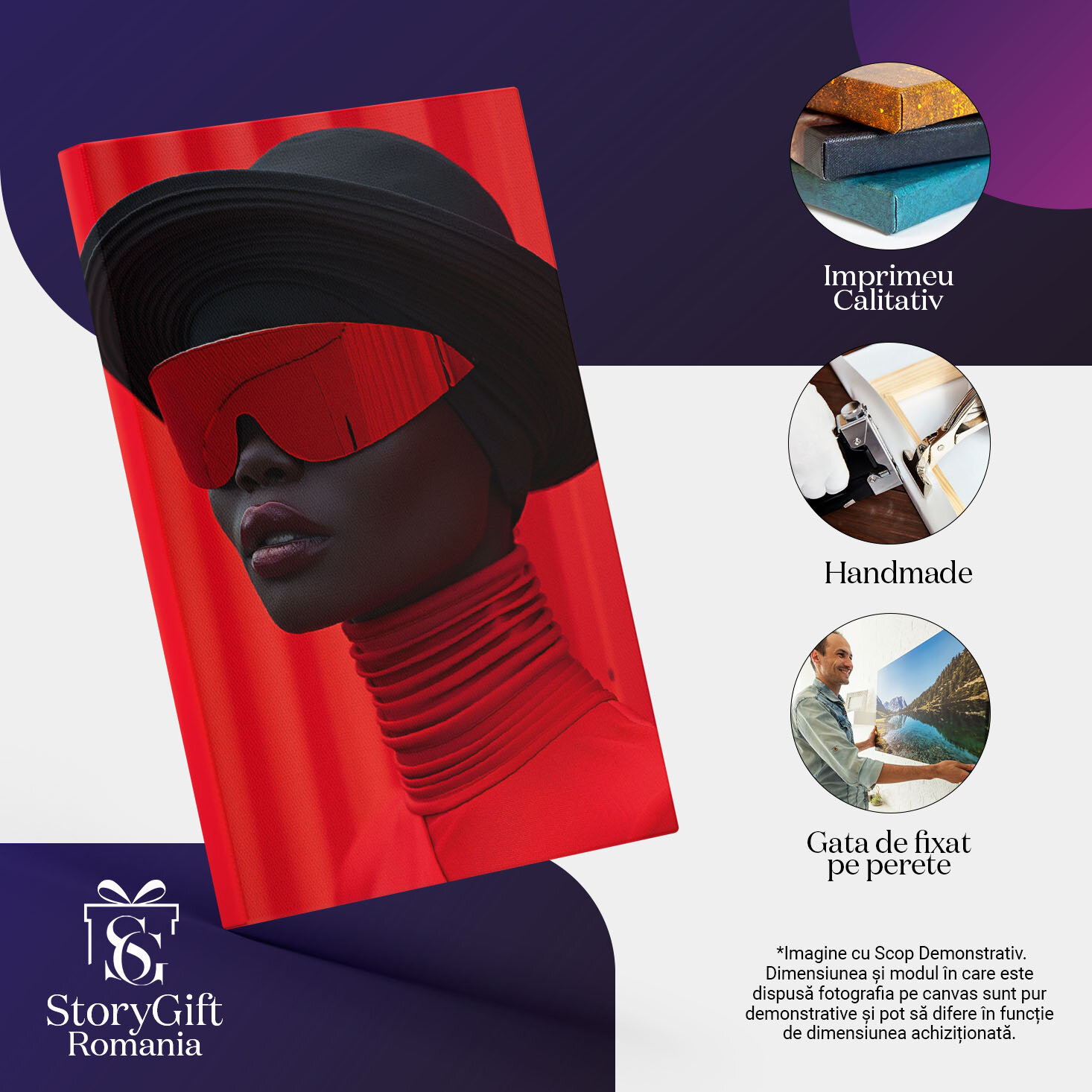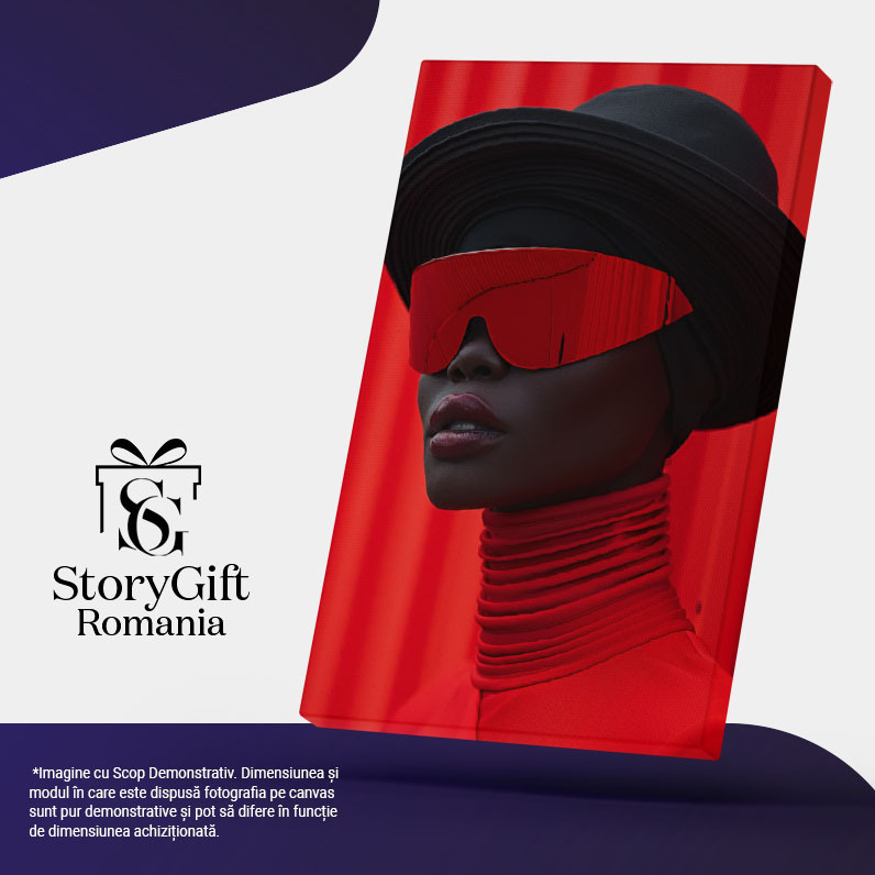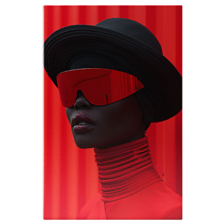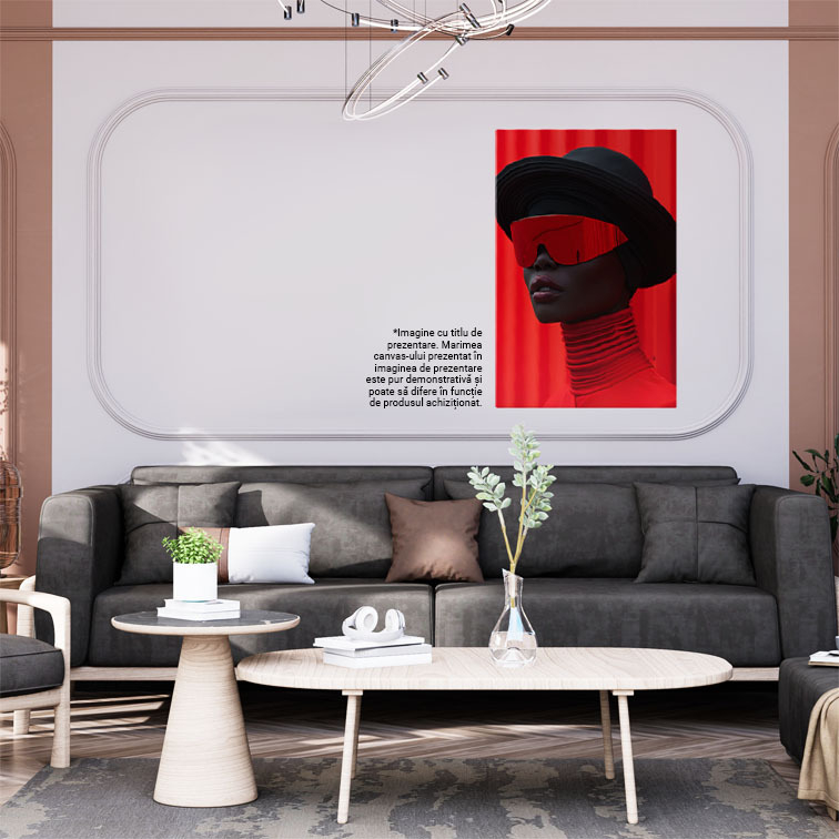 Tablou Canvas Evadare Fashion a unui manechin stilat - Oază roșie prin ochelari de schi , Pictura Digitala 40x25CM