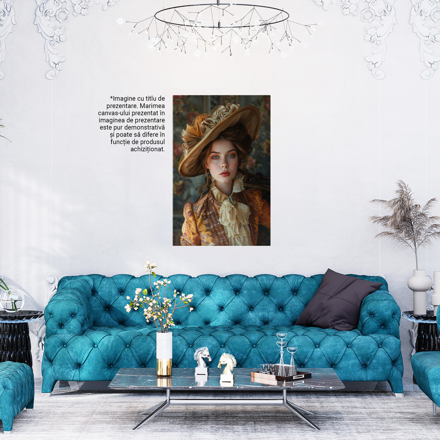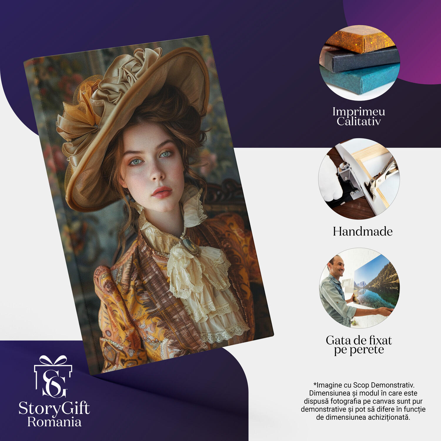 Tablou Canvas: O Femeie imbracata in trendul anilor 1800 - Port din Trecut Pictura Digitala - Tablou Canvas Signature de la StoryGift Romania