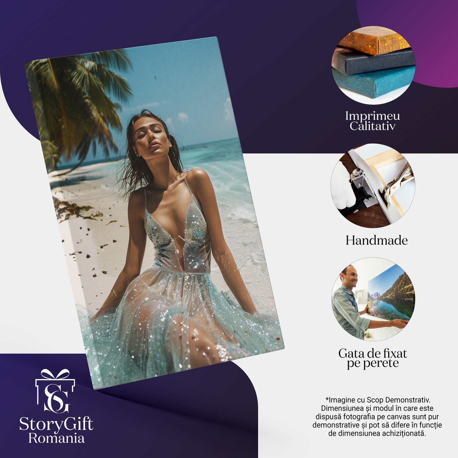 Notă importantă: Precizăm că imaginile de pe site au scop ilustrativ. Detaliile reale ale produsului pot prezenta diferențe minore față de reprezentările digitale, datorită variațiilor de culoare, mărimea tabloului și rezoluția dispozitivelor. Disponibilitatea în diverse dimensiuni ne permite să satisfacem nevoile dvs. specifice; pentru a vă asigura de alegerea potrivită, recomandăm măsurarea atentă a spațiului alocat.