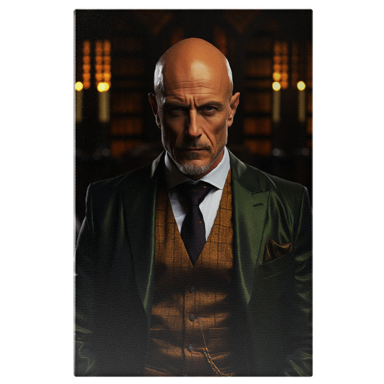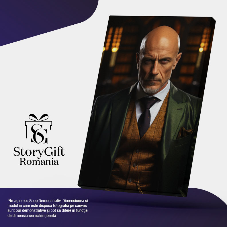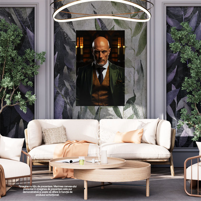 Tablou Canvas: Portret barbat de afaceri chel in bibloteca Pictura Digitala 40x25CM