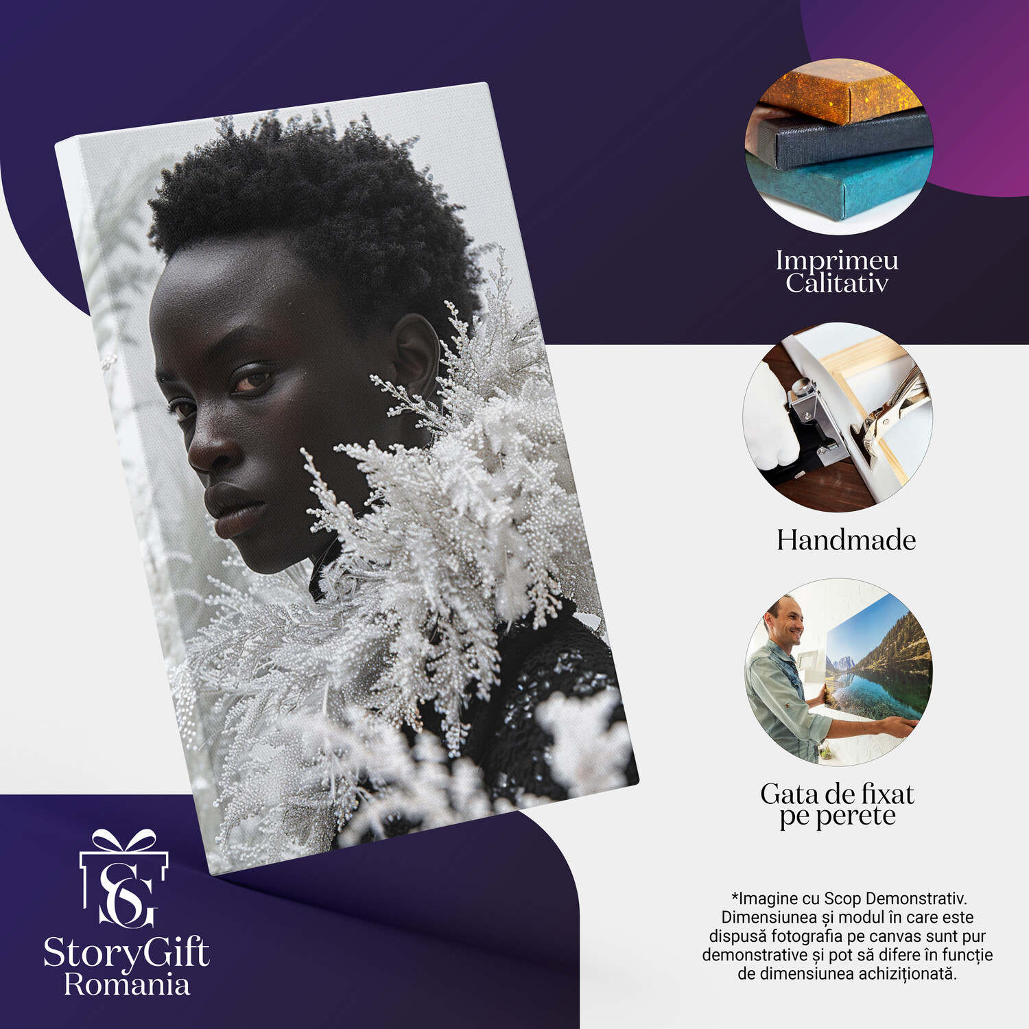 Notă importantă: Precizăm că imaginile de pe site au scop ilustrativ. Detaliile reale ale produsului pot prezenta diferențe minore față de reprezentările digitale, datorită variațiilor de culoare, mărimea tabloului și rezoluția dispozitivelor. Disponibilitatea în diverse dimensiuni ne permite să satisfacem nevoile dvs. specifice; pentru a vă asigura de alegerea potrivită, recomandăm măsurarea atentă a spațiului alocat.