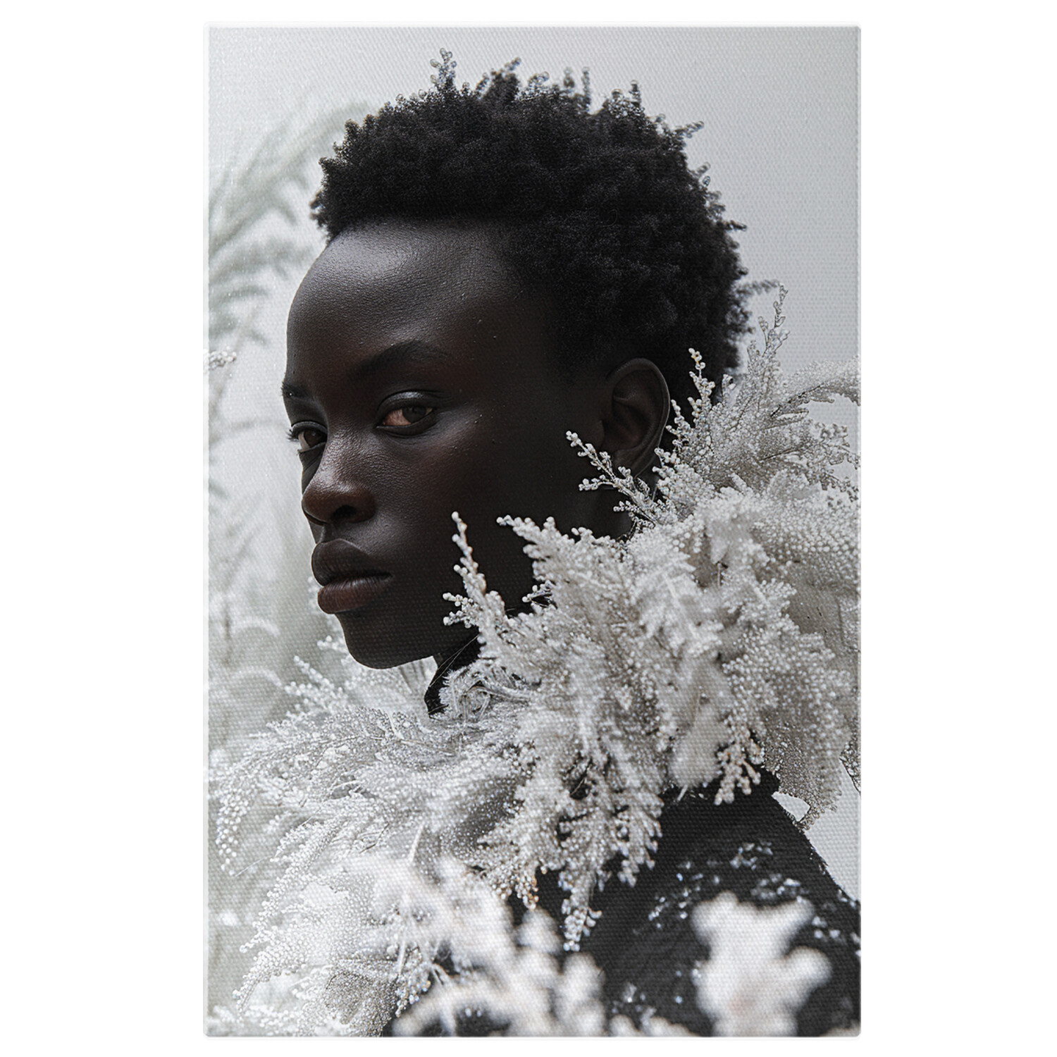 Tablou Canvas Privirea Personajului Static in Lumea in Continua Miscare Portre Alb Negru , Pictura Digitala - Tablou Canvas Signature de la StoryGift Romania