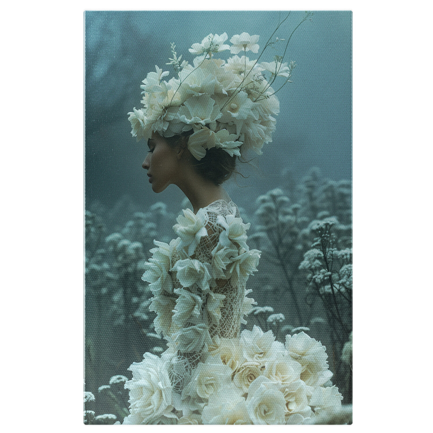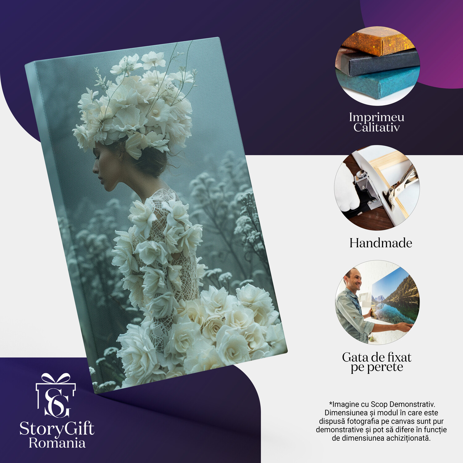 Tablou Canvas: Refugiul Florilor Albe pe Domnita din Lan in Ceata Apasatoare a Naturii Pictura Digitala - Tablou Canvas Signature de la StoryGift Romania