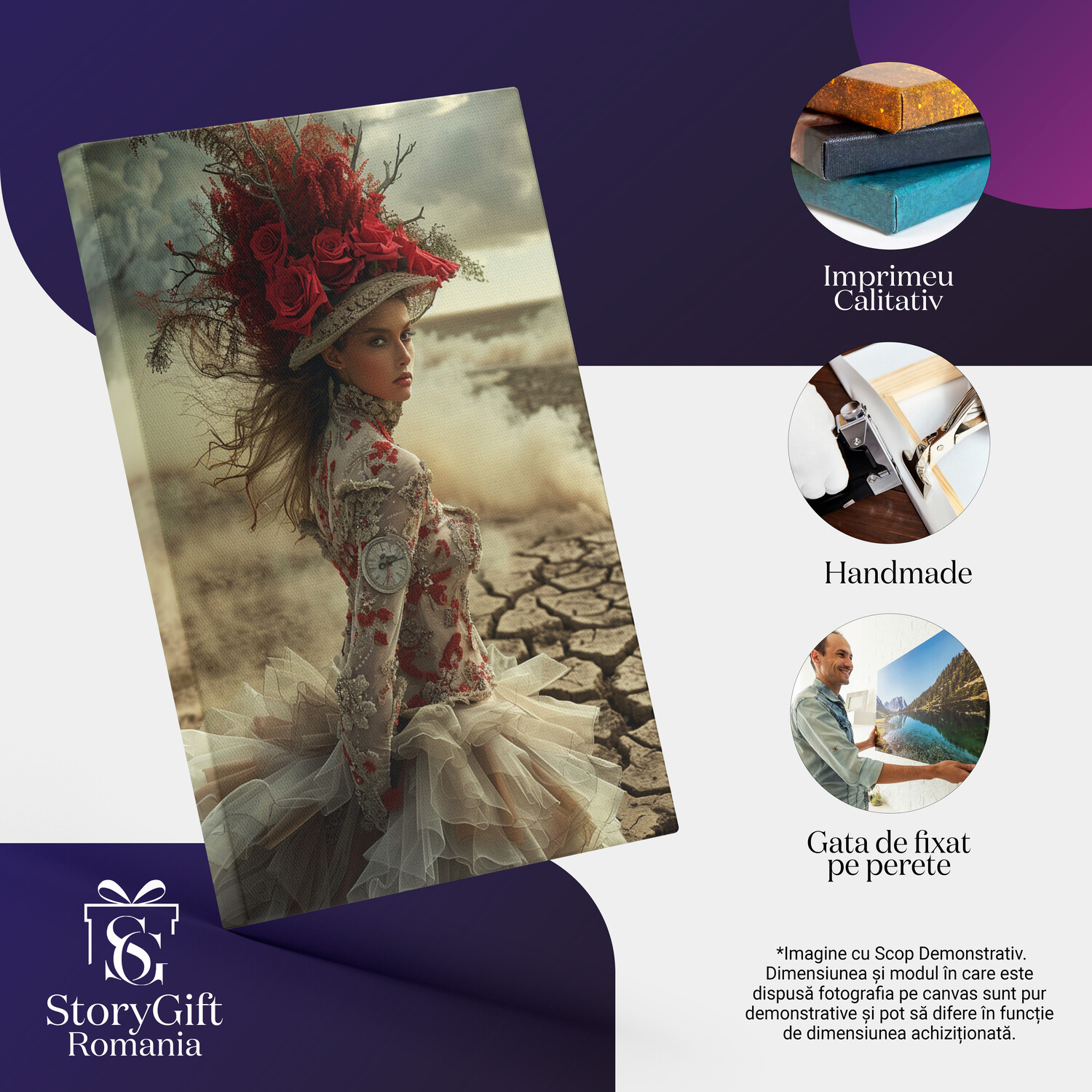 Notă importantă: Precizăm că imaginile de pe site au scop ilustrativ. Detaliile reale ale produsului pot prezenta diferențe minore față de reprezentările digitale, datorită variațiilor de culoare, mărimea tabloului și rezoluția dispozitivelor. Disponibilitatea în diverse dimensiuni ne permite să satisfacem nevoile dvs. specifice; pentru a vă asigura de alegerea potrivită, recomandăm măsurarea atentă a spațiului alocat.