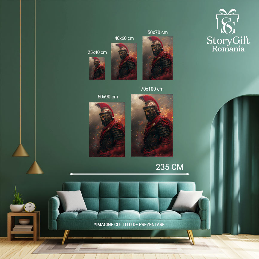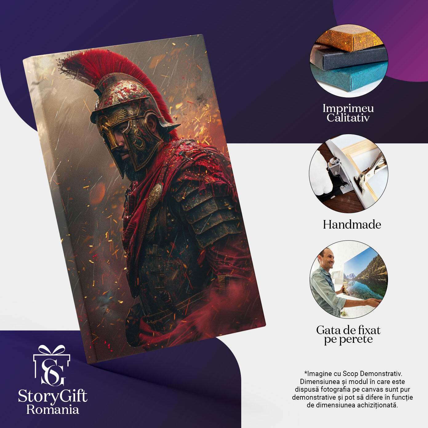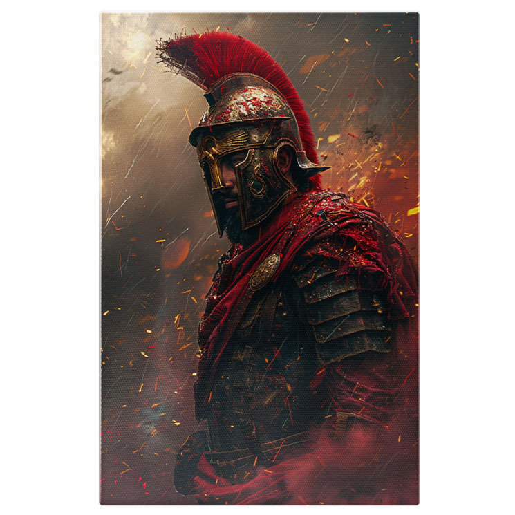 Tablou Canvas Romanul Războinic Cuprins de Flăcări și Fum Iese Triumfător din Luptă , Pictura Digitala 40x25CM