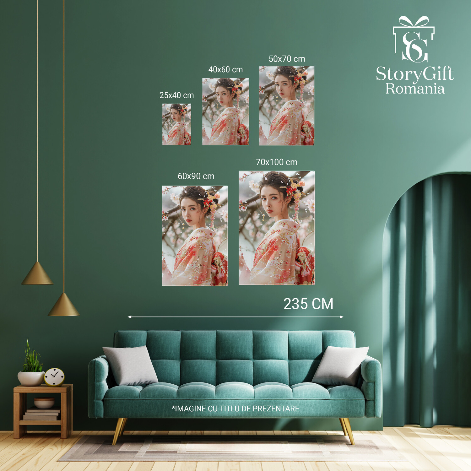 Notă importantă: Precizăm că imaginile de pe site au scop ilustrativ. Detaliile reale ale produsului pot prezenta diferențe minore față de reprezentările digitale, datorită variațiilor de culoare, mărimea tabloului și rezoluția dispozitivelor. Disponibilitatea în diverse dimensiuni ne permite să satisfacem nevoile dvs. specifice; pentru a vă asigura de alegerea potrivită, recomandăm măsurarea atentă a spațiului alocat.
