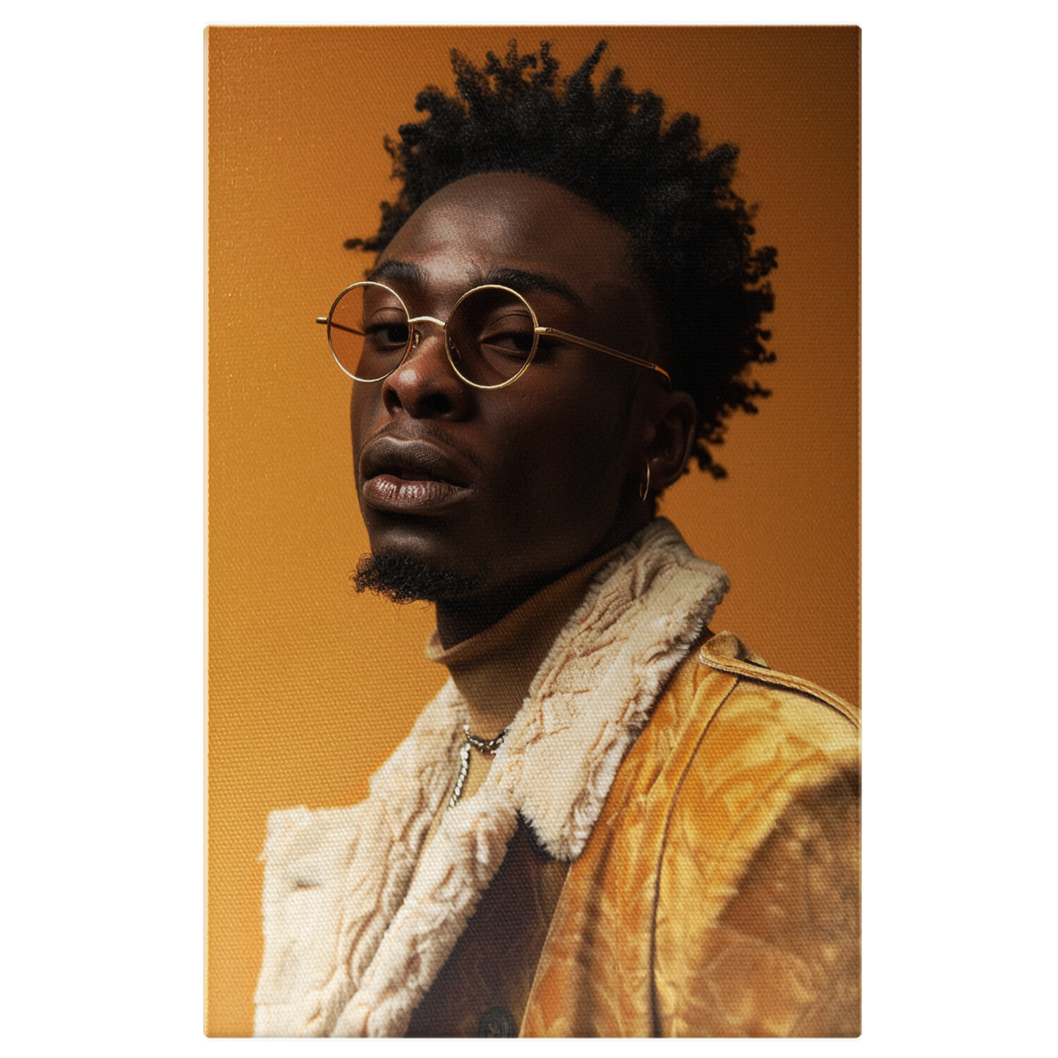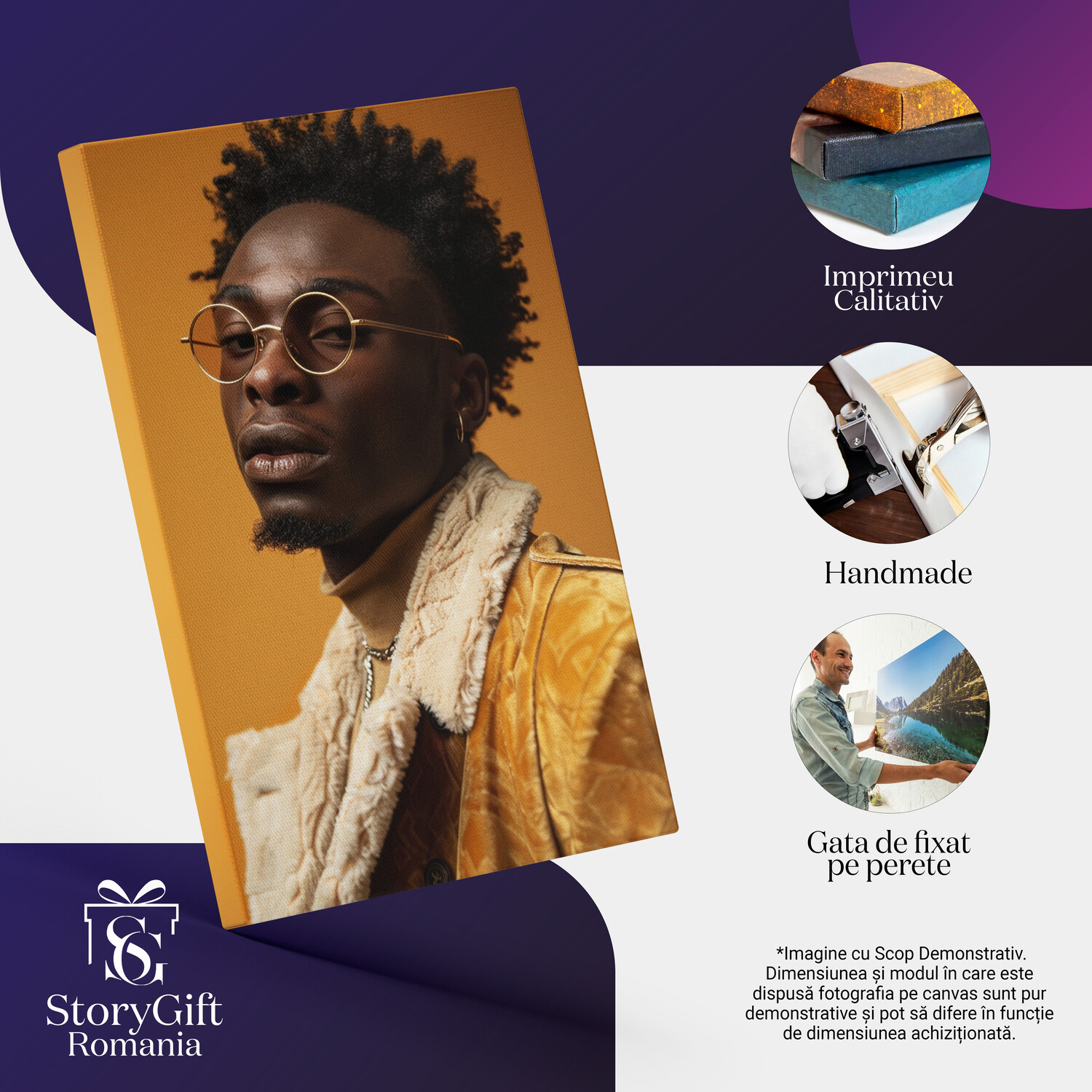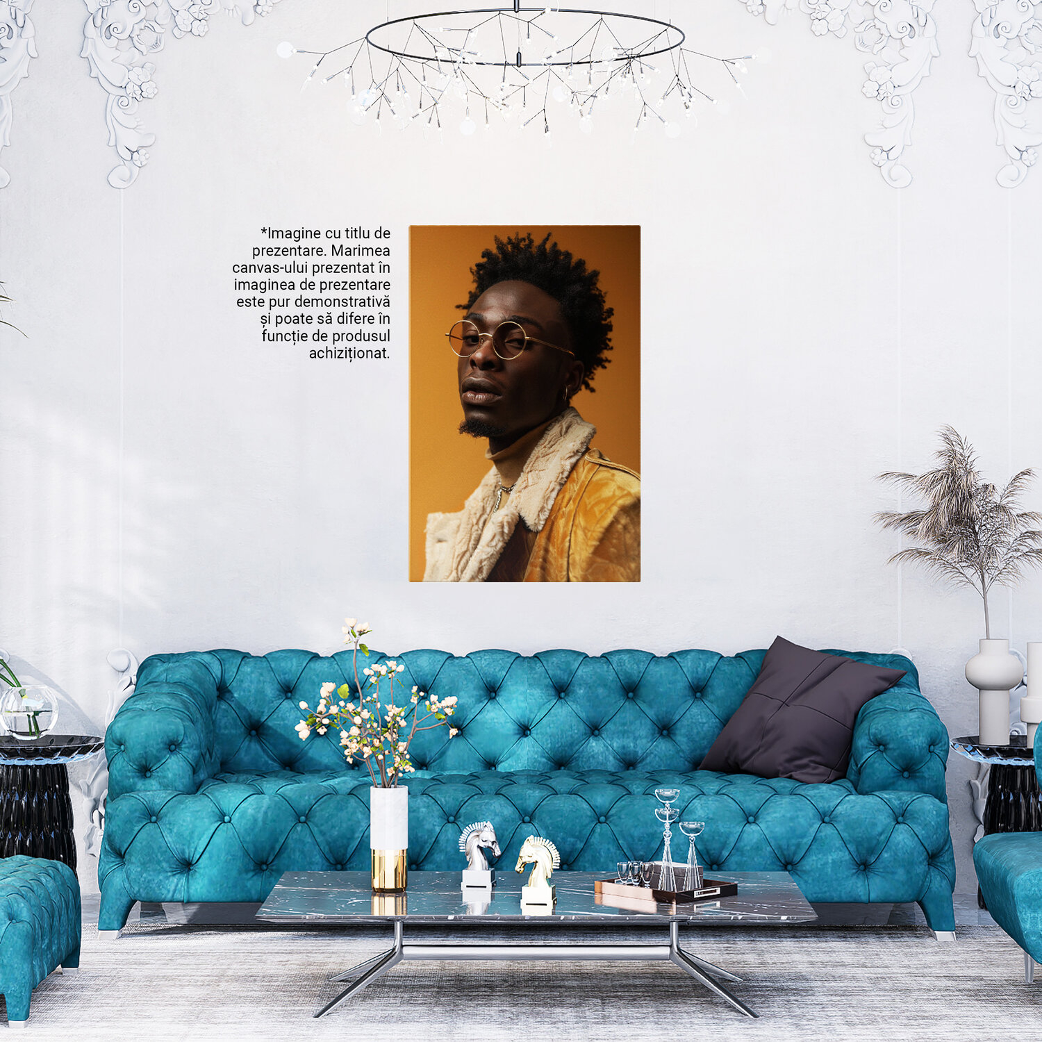 Tablou Canvas: Un Baiat de Culoare cu Jacheta Crem si Ochelari - Atitudine Pictura Digitala 40x25CM