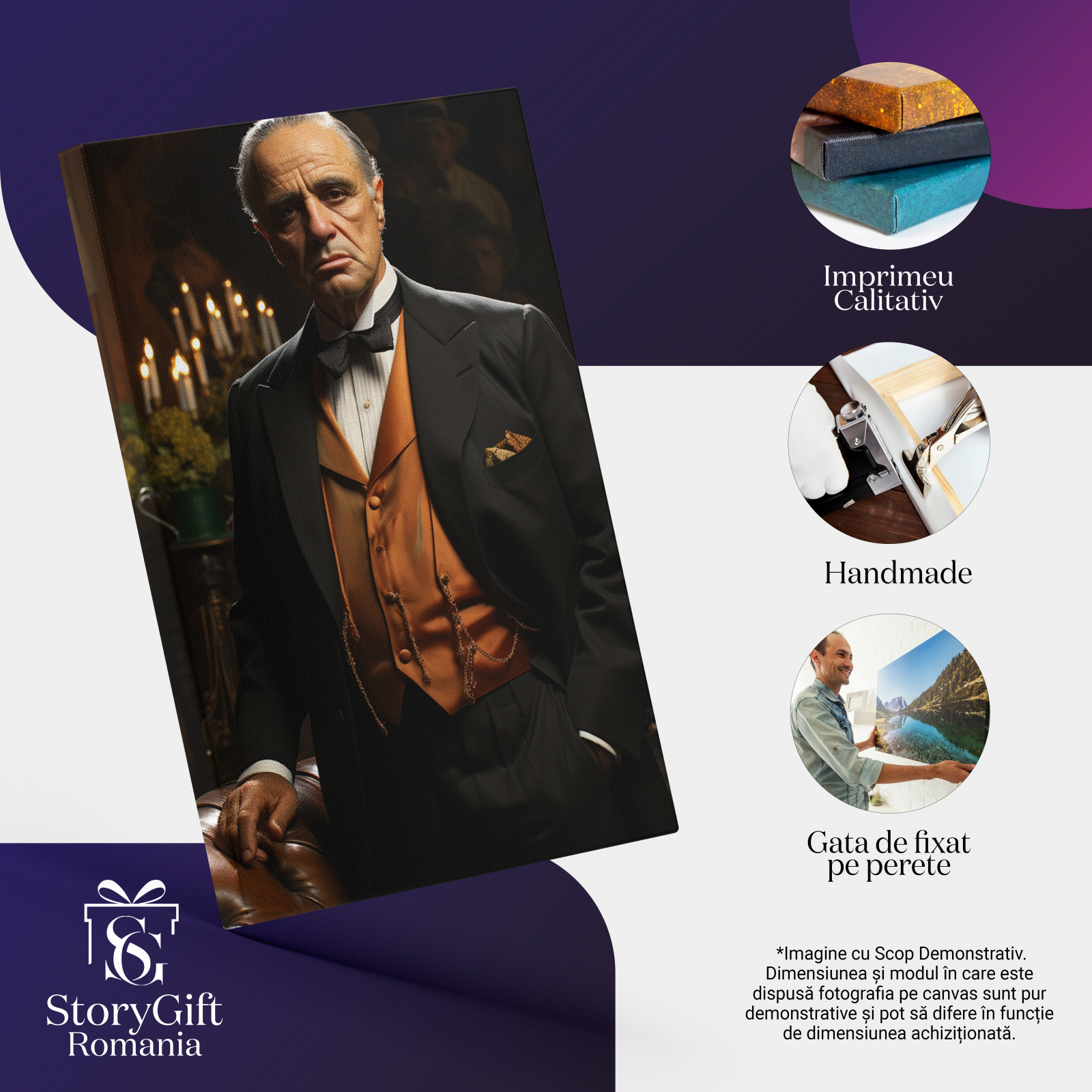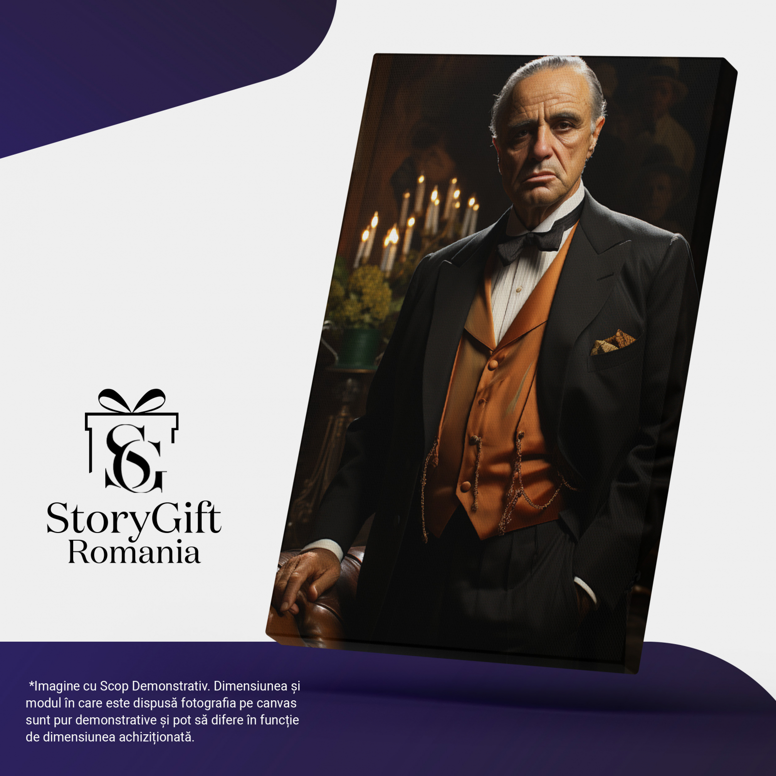 Tablou Canvas: Fotografie cu un mafiot batran - capul mafiei godfather Pictura Digitala 100x70CM - Tablou Canvas Signature de la StoryGift Romania