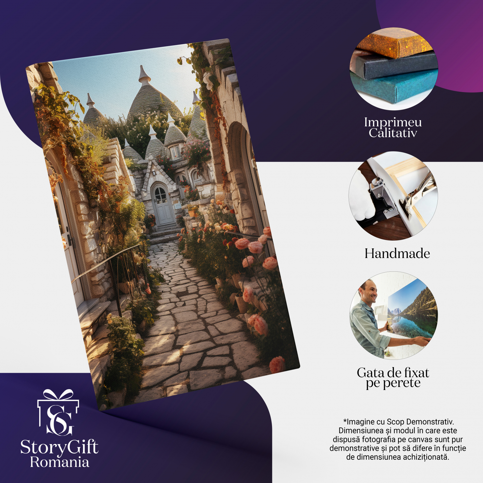 Tablou Canvas: View oras magic Italia Alberobello sau Trulli Village zane Pictura Digitala 40x25CM - Tablou Canvas Signature de la StoryGift Romania