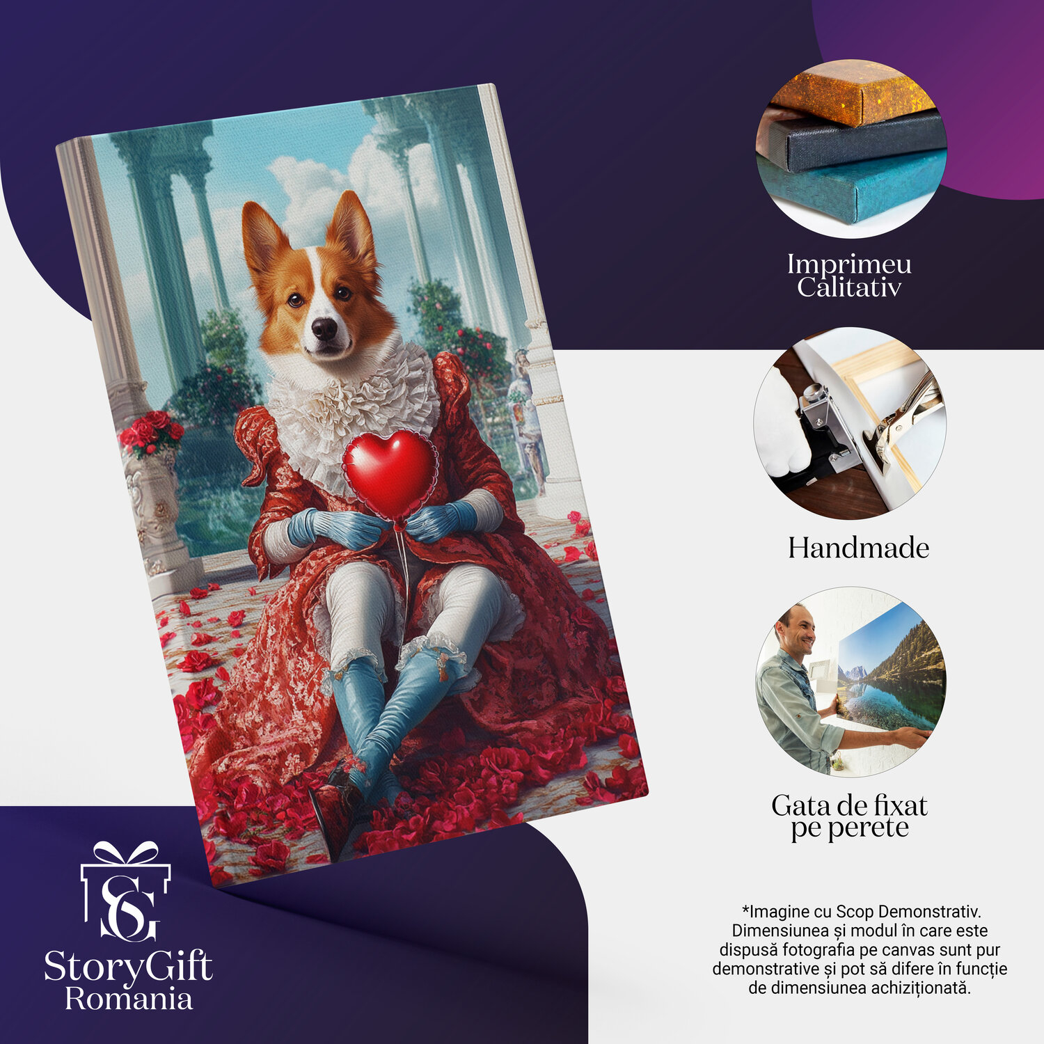 Tablou Canvas Personalizat Conte cu balon in forma de inima rosie sarbatoare romantica Valentine's Day, petale de flori ziua indragostitilor 40x25CM