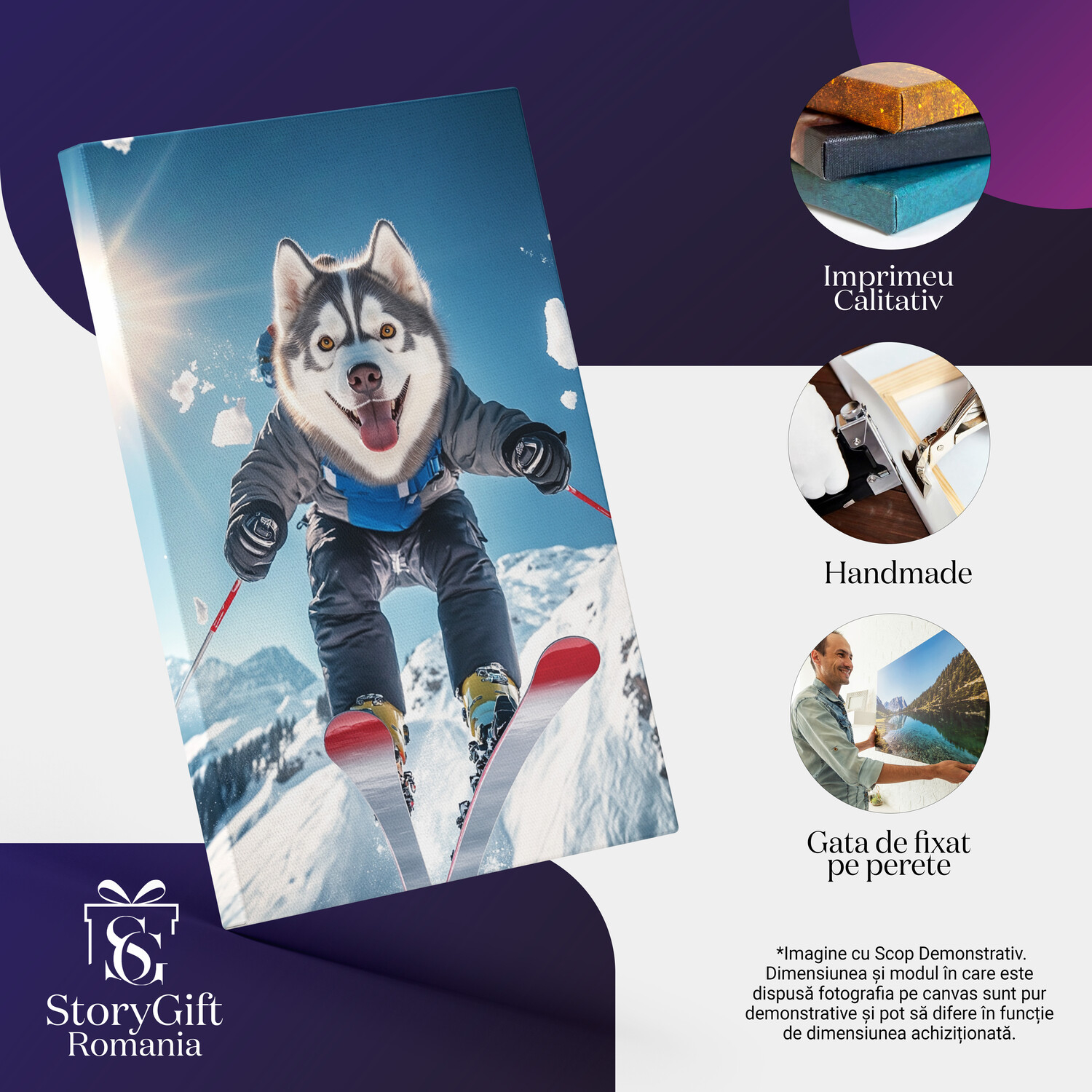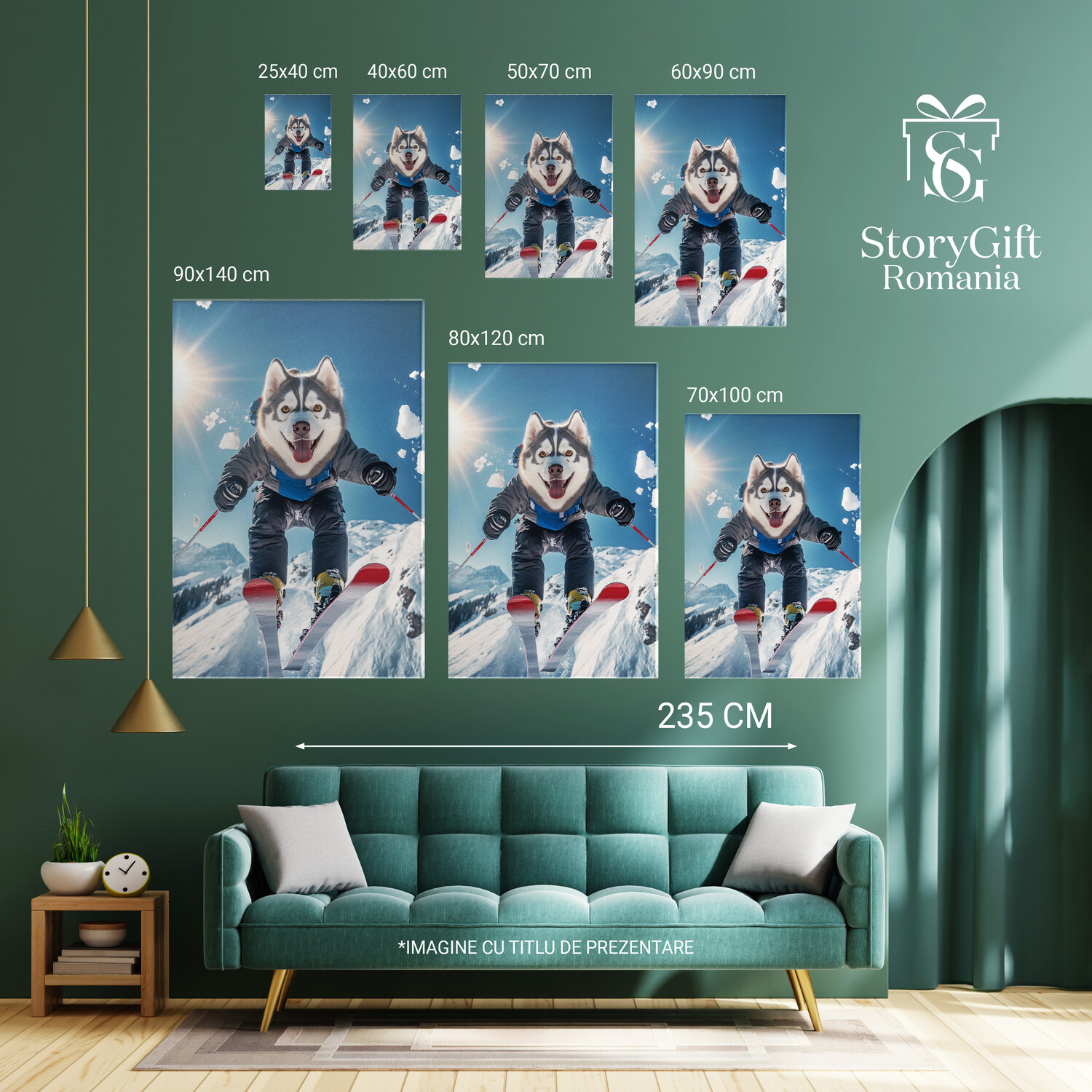 Tablou Canvas Personalizat Iubtor de eperiente intense, schiuri in aer, saritura pe stanca, echipament de iarna, zapada 140x90CM
