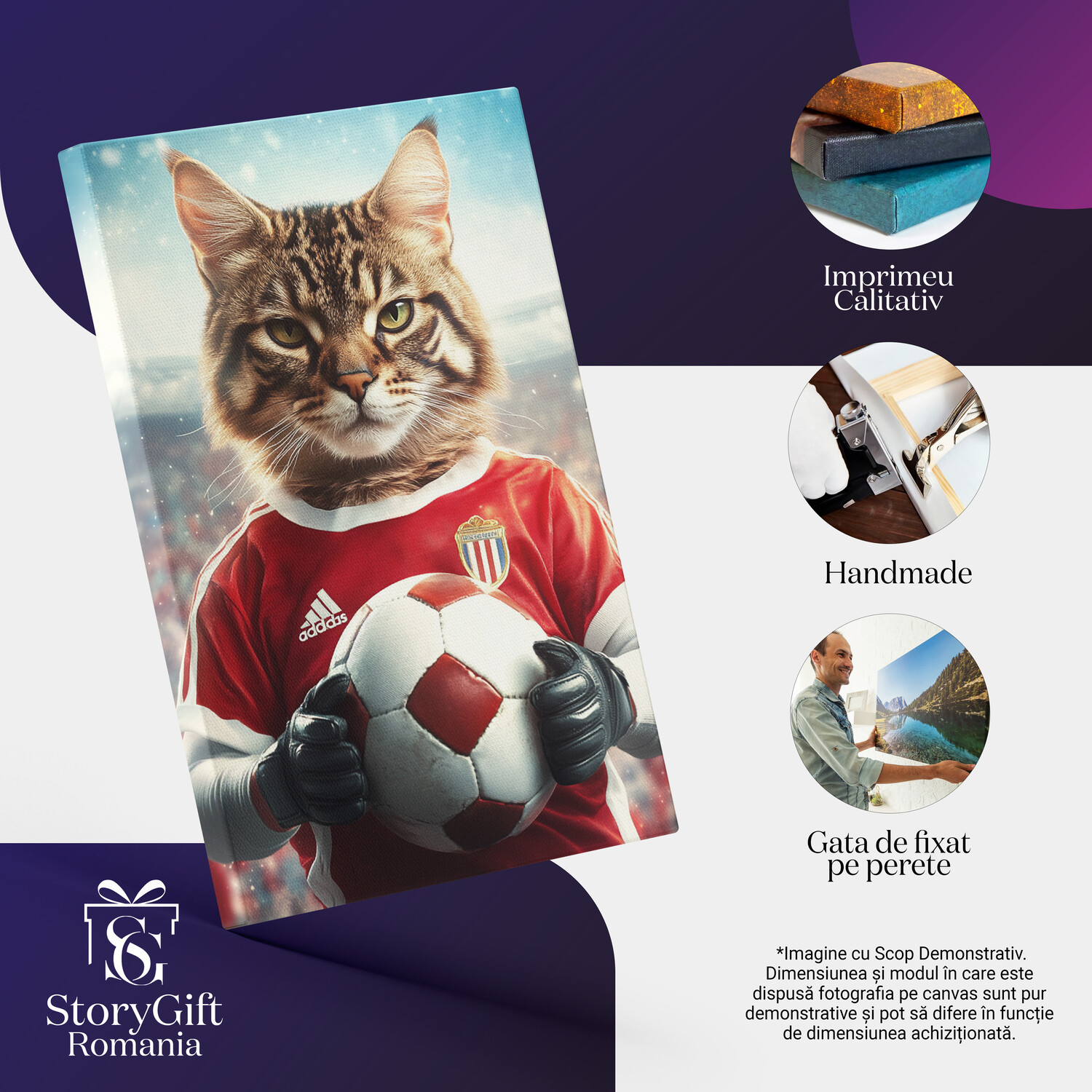 Tablou Canvas Personalizat Jucator de Fotbal in echipament rosu cu minge rosie, maini pe teren, sport de echipa, 40x25CM