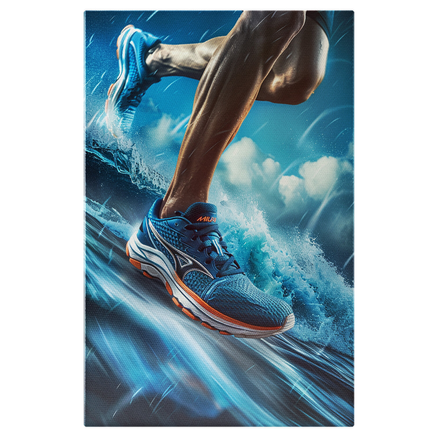 Tablou Canvas Picaturi de ploaie peste alergator in miscare- Adidasi albastrii si valuri , Pictura Digitala 40x25CM