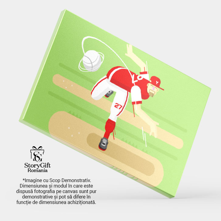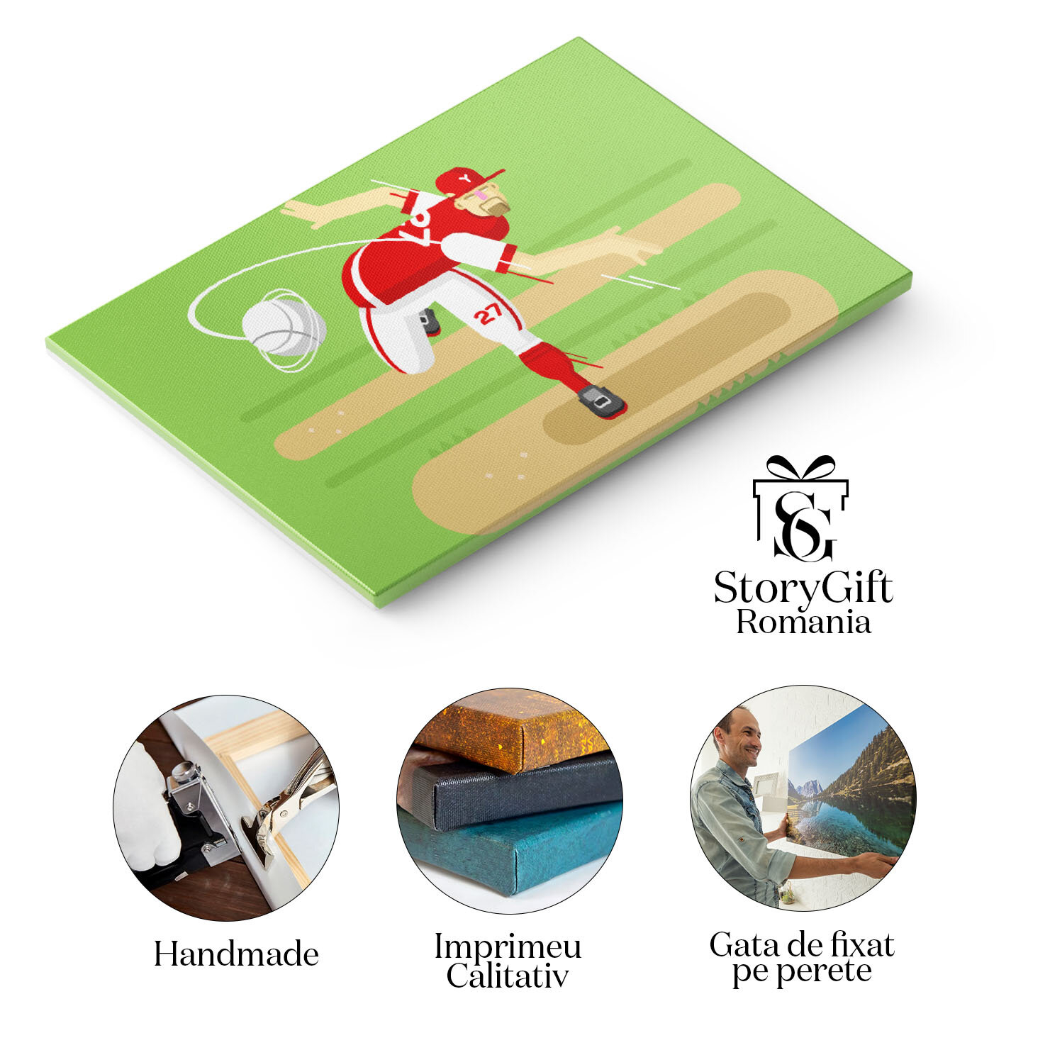 Tablou Canvas Pasionat de Sport , Jucator de Ruigby in Echipament Alb-Rosu cu Sapca Aruncand o Minge Alba 40x25CM