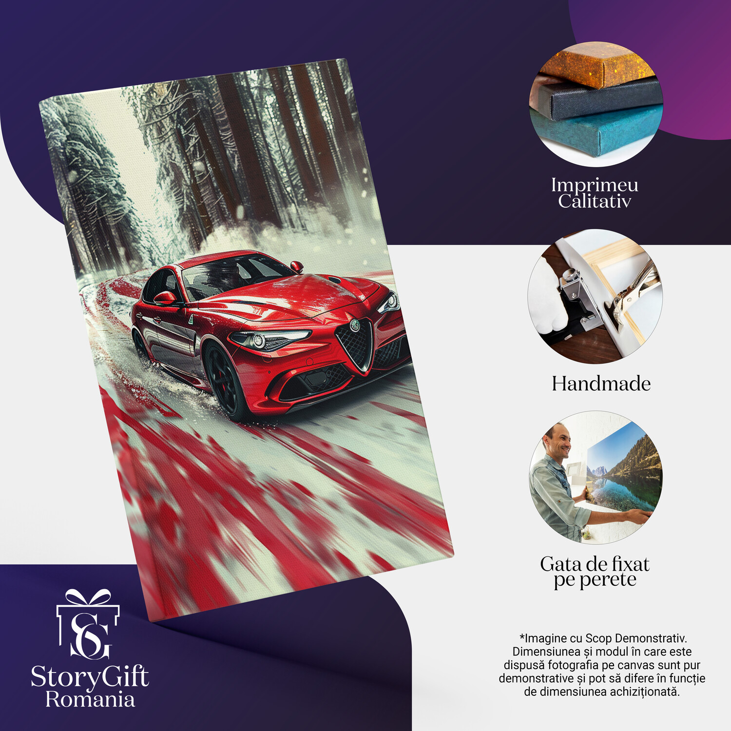 Tablou Canvas Autoturism de Lux Masina Special facuta pentru Viteza Alfa Romeo GTA Rosie Trece Prin Zapada , Pictura Digitala - Tablou Canvas Signature de la StoryGift Romania