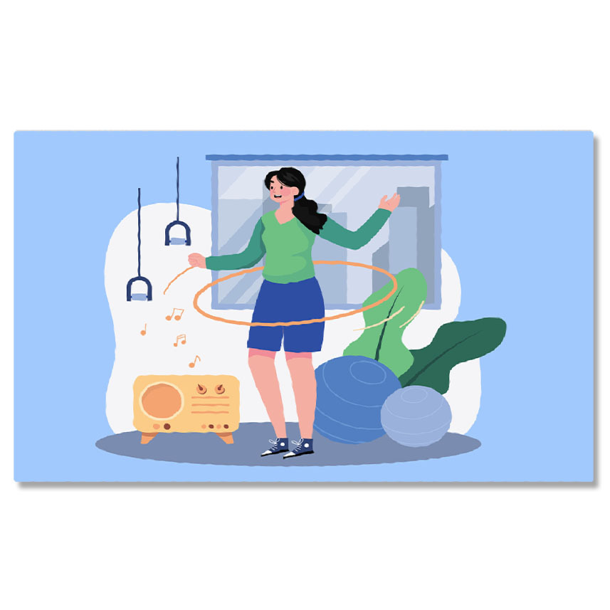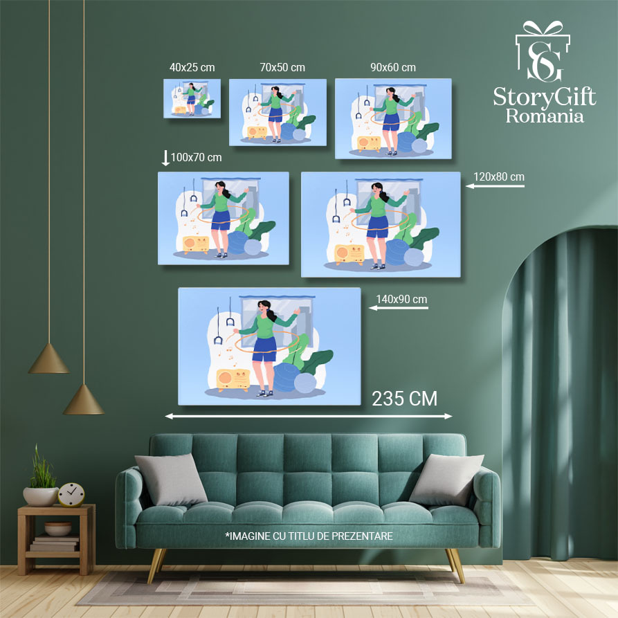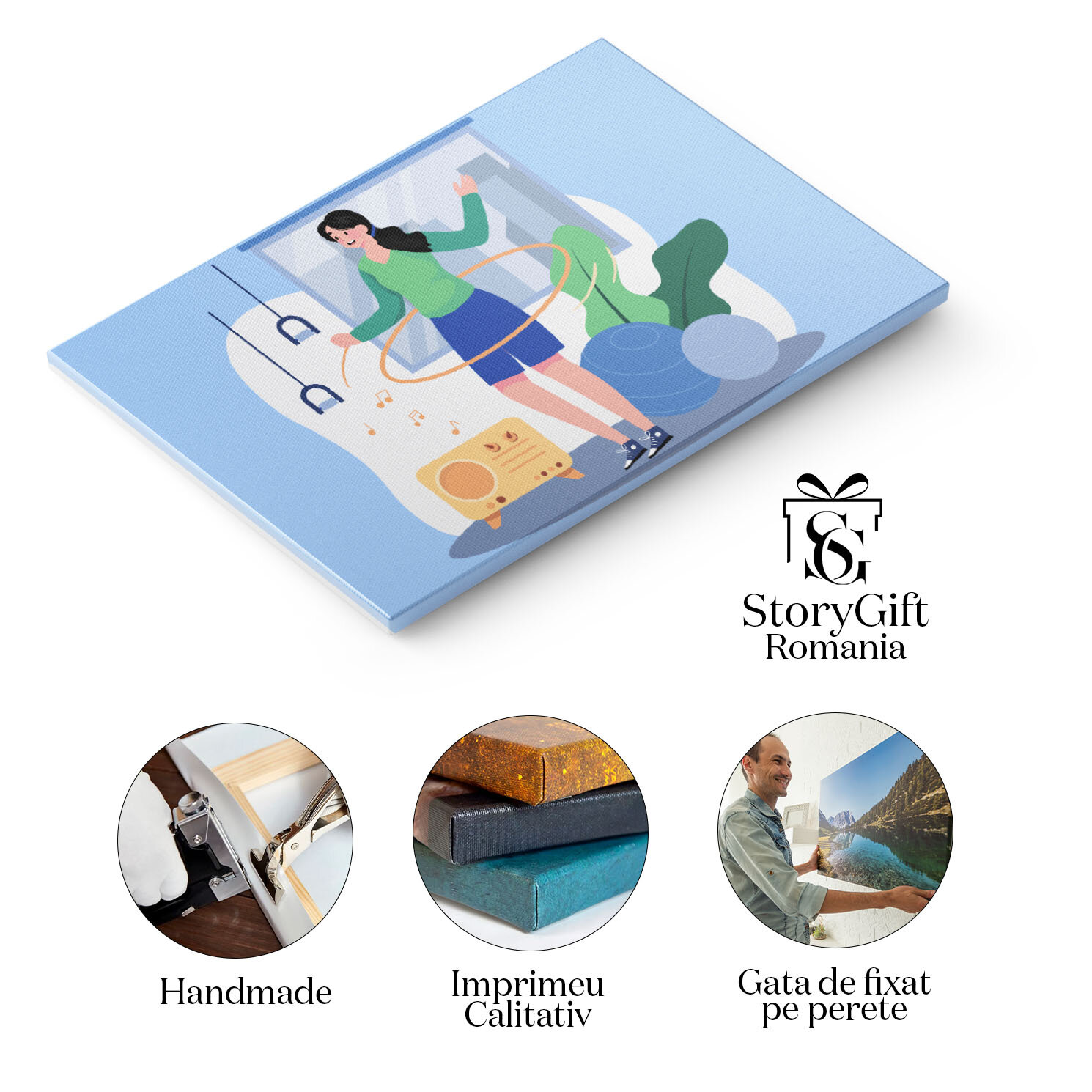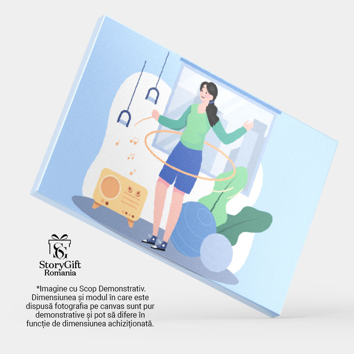 Tablou Canvas Tanara cu Parul Lung Brunet cu un Cerc Hula care se Invarte in Jurul Taliei Exersand 40x25CM