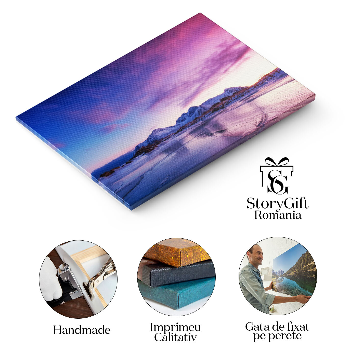Tablou Canvas Culmea Muntelui si Gheata pe Suprafata Lacului Inghetat, Norvegia, Iarna, Peisaj Montan 3148 40x25CM