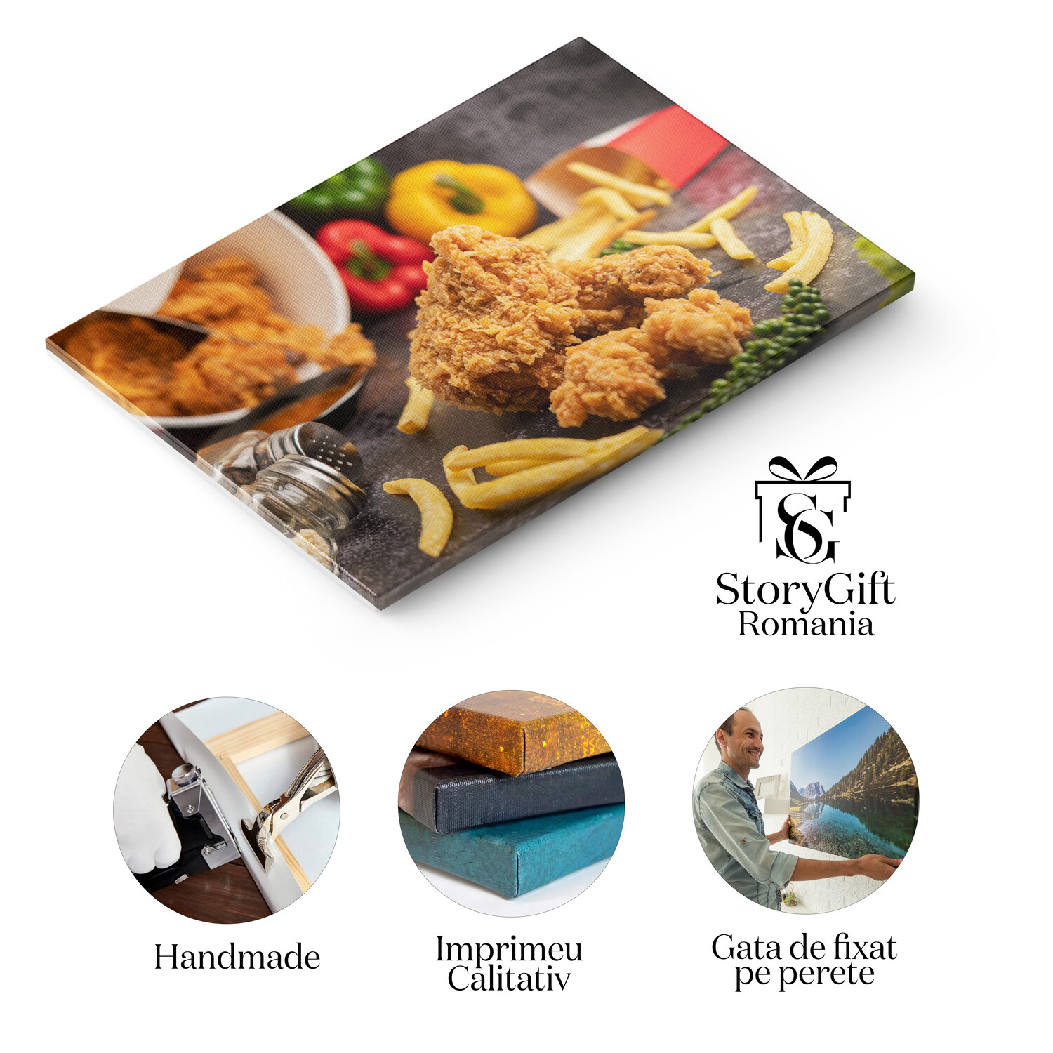 Tablou Canvas Delicioasa Combinatie Pui Prajit si Cartofi Pai pe O Suprafata de Ciment Neagra Un Festin pentru Papilele tale Gustative - Tablou Canvas Signature de la StoryGift Romania