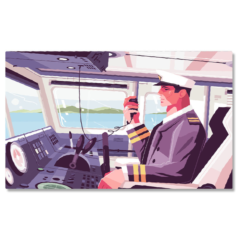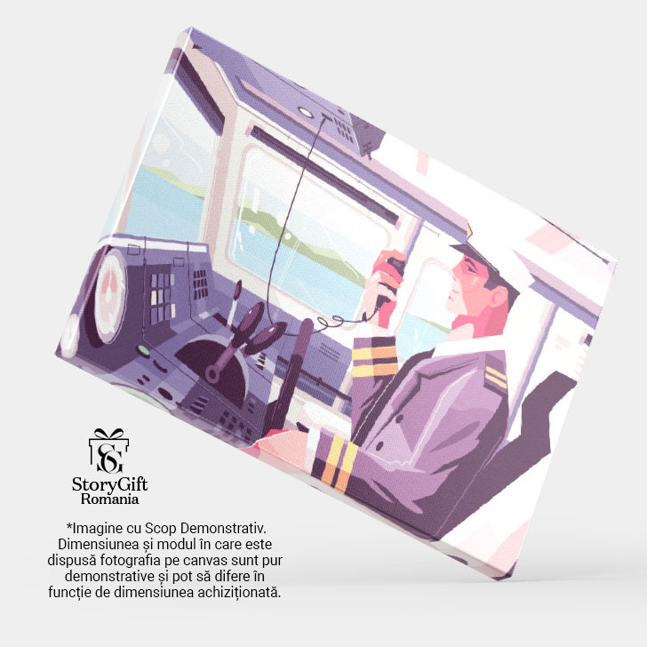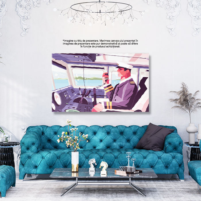 Tablou Canvas Pilotul care Anunta prin Statie o Posibil Aterizare in Apa cccu Basca Alba si Imbracaminte Eleganta 40x25CM