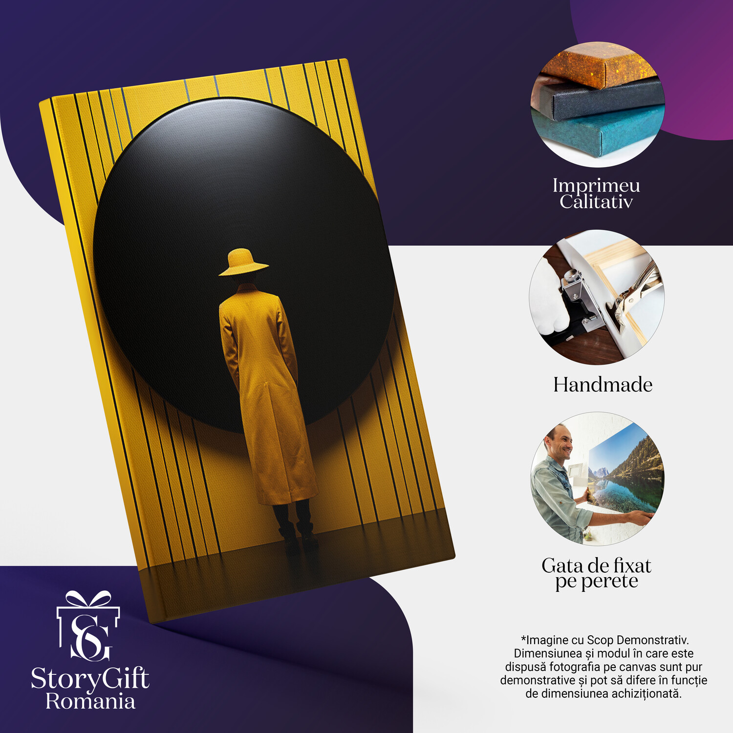 Tablou Canvas: Fotografie cu o figura imbracata in galben - cerc negru abstract Pictura Digitala - Tablou Canvas Signature de la StoryGift Romania