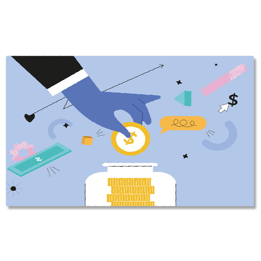Tablou Canvas Mana unui Barbat Imbracat Elegant in Costum si Cravata care Pune Monede in Pusculita 40x25CM