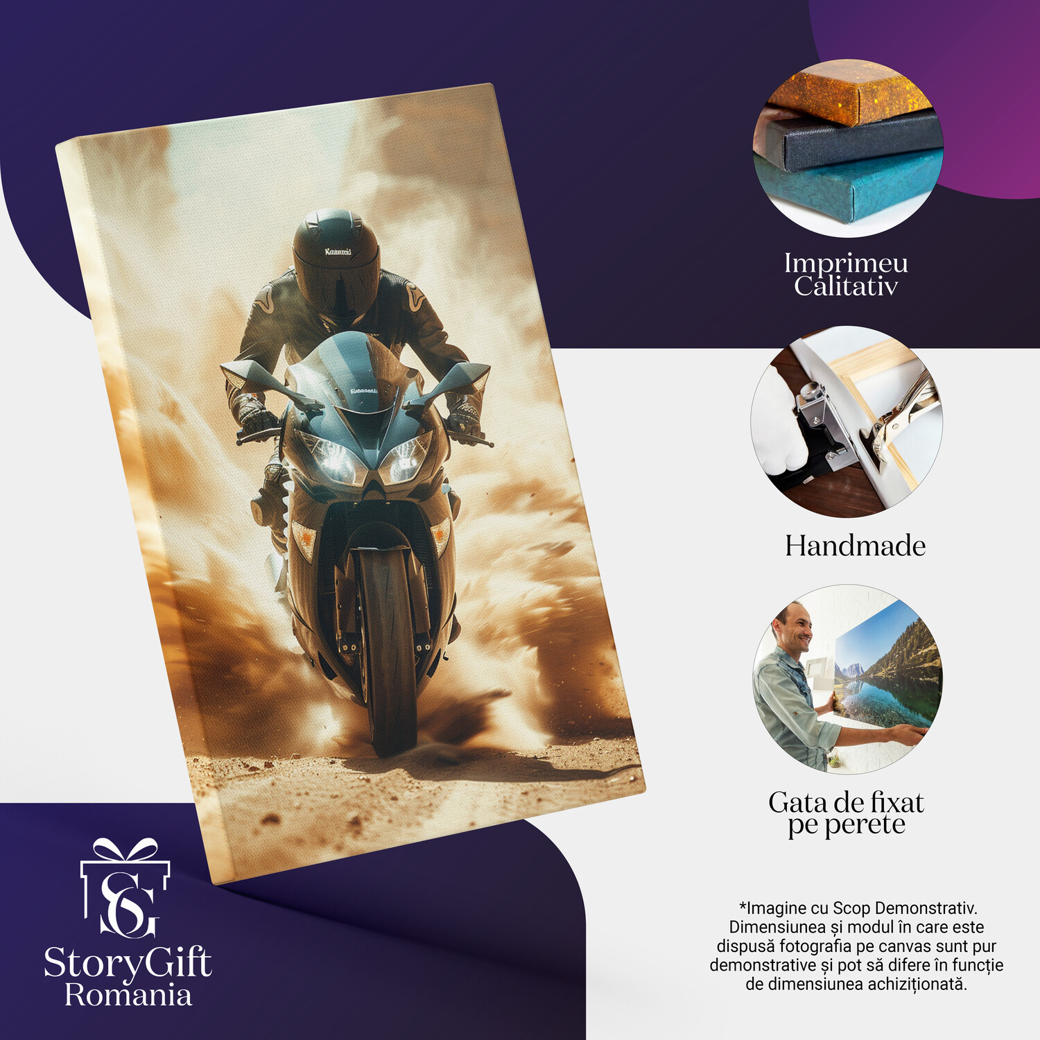 Tablou Canvas Motociclistul Accelereaza Lasand un Nor de Praf Ridicat in Urma Sa , Pictura Digitala - Tablou Canvas Signature de la StoryGift Romania