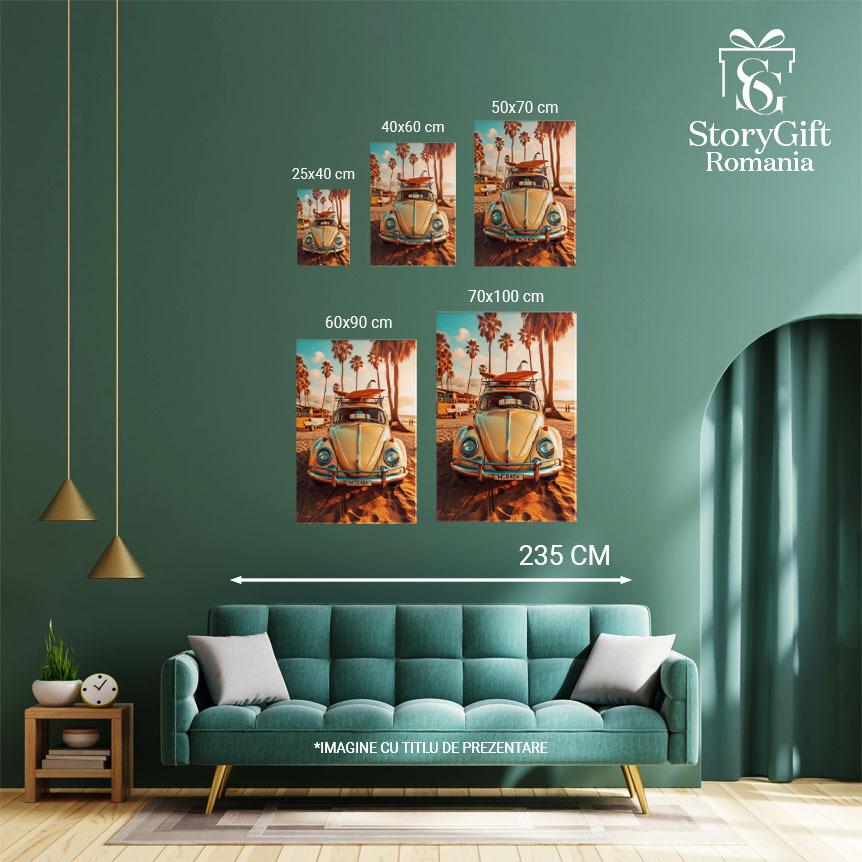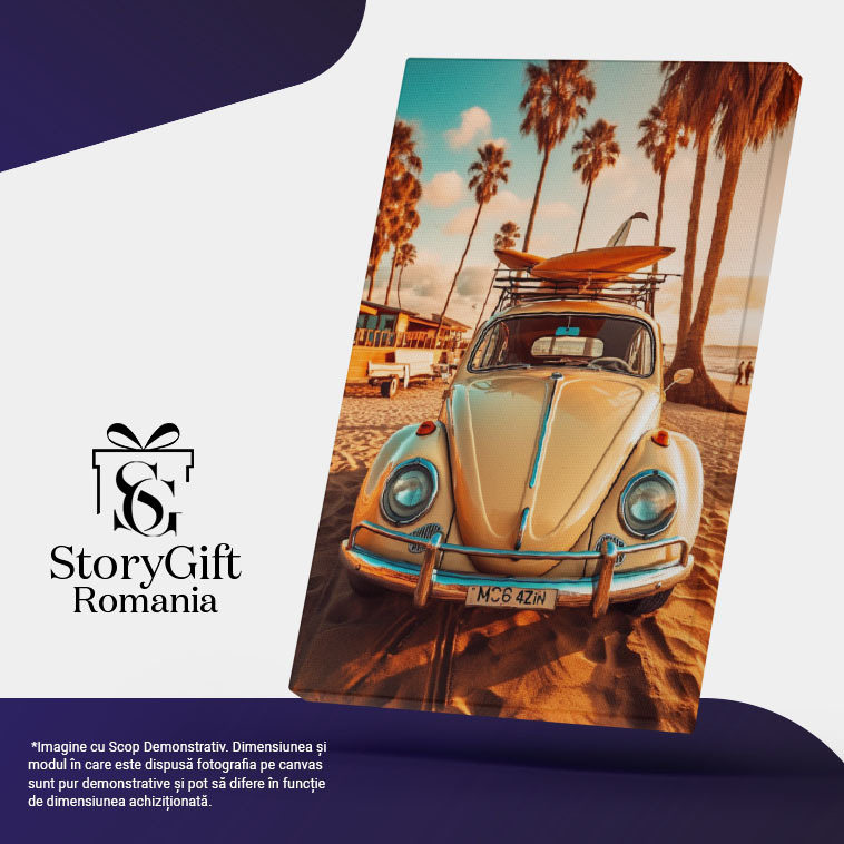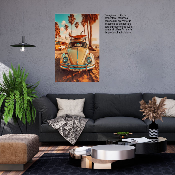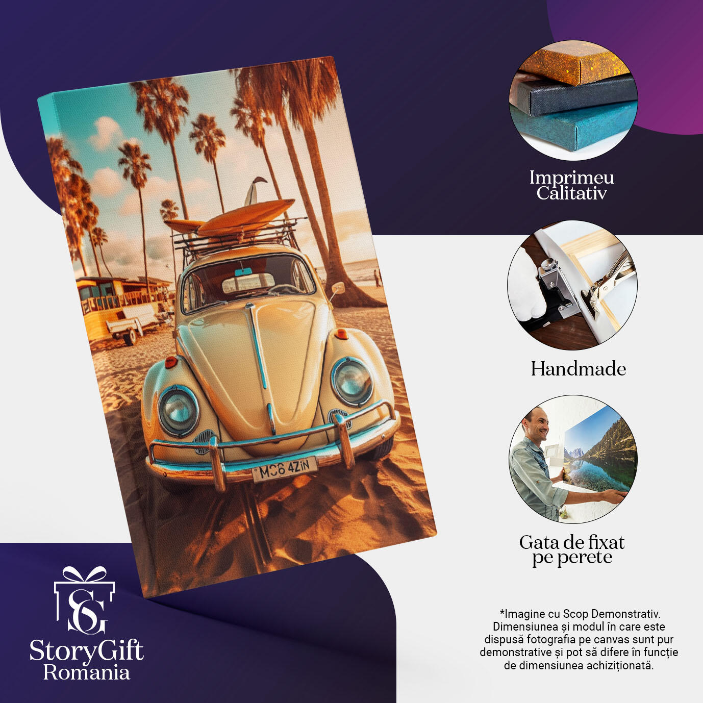 Tablou Canvas: Fotografie cu o masina de epoca pe plaja - la mare concediu Pictura Digitala 40x25CM